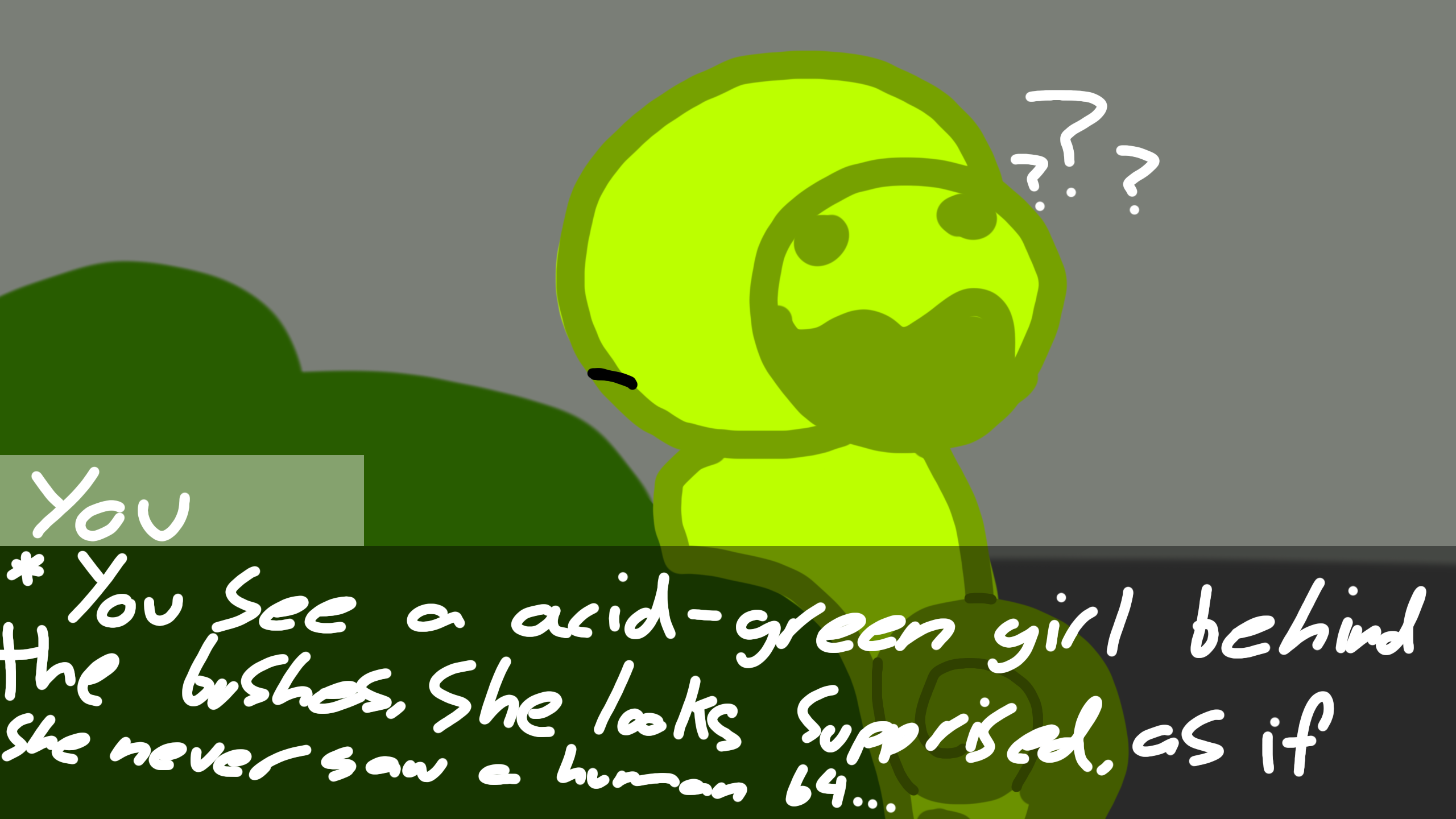 is it ok if i draw the perspective tmrw?/ @red_draws-things-idk -Lime draws on the wall, a girl, somebody else inside a room with no windows and only a light on the roof- -Lime blinks and stares at AJ-