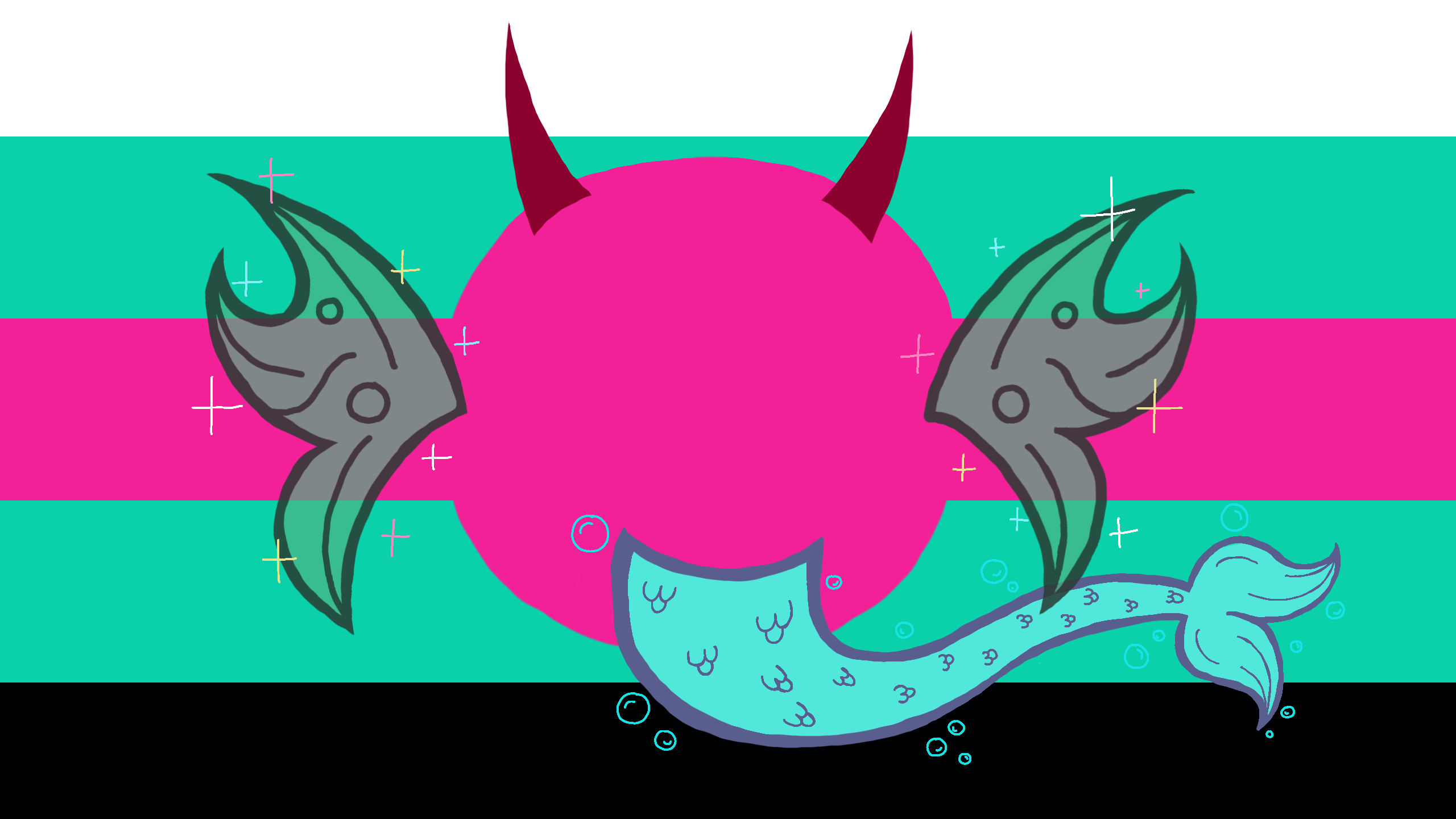 Here is my second otherhearted flag, made up of all my favorite colors and showing off my own personal hearttypes: I'm fairyhearted, mermaidhearted and demonhearted.