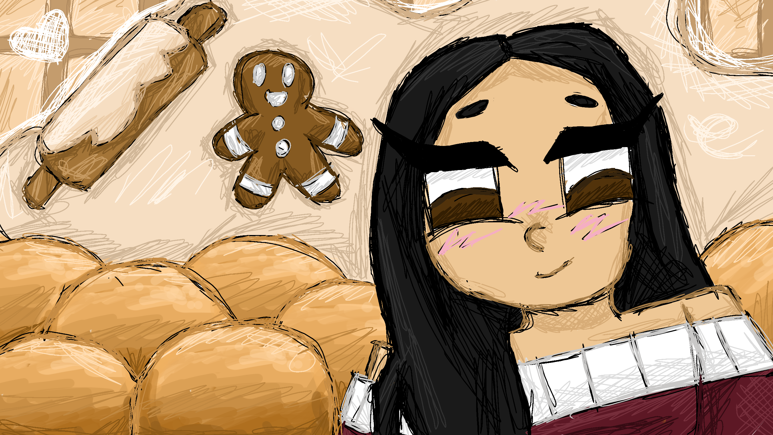 she makes bread herself so i drew bread rolls surrounding her