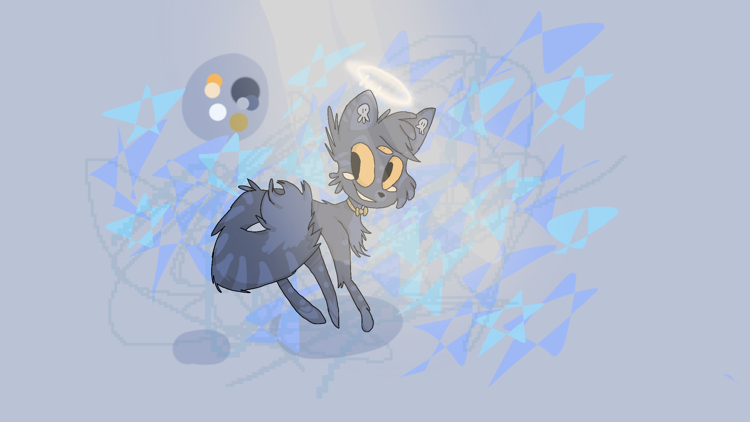 in my oc lore he is Lorelei's cat. which is why i almost drew them on the same canvas. also the cats name is RockStar. i messed up on name. i was messing around with the background and i think this looks neat