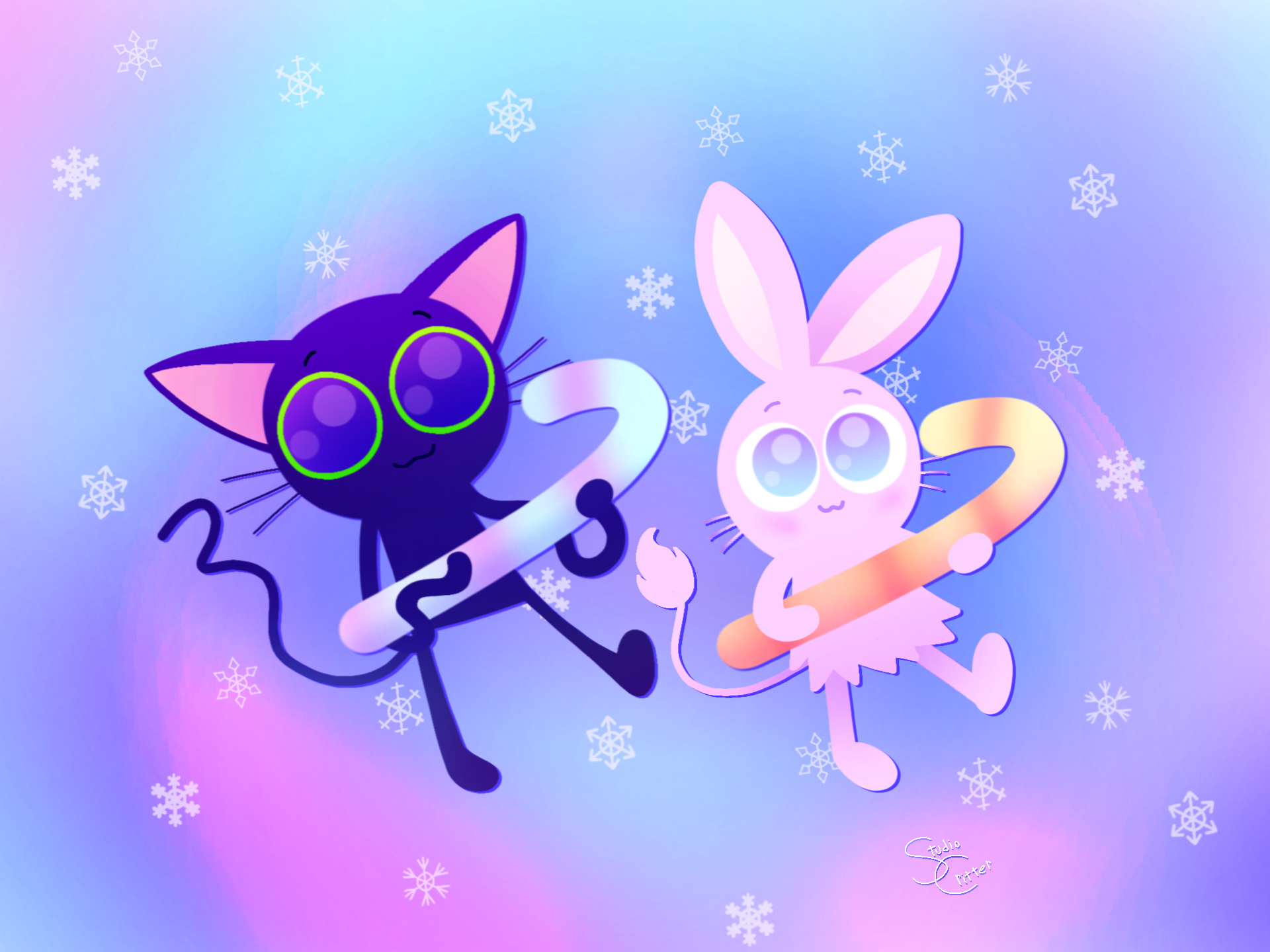 :snowflake: :santa: :christmas_tree: :gift: #merrychristmas #happyholidays #pipsqueaksquiggles #littlenoodles #pastel #cute #kawaii #snow #snowflakes #candycane #kitty #cat #bunny #rabbit #chibi #y2k #dance #drawing #painting #oc #studiocritter