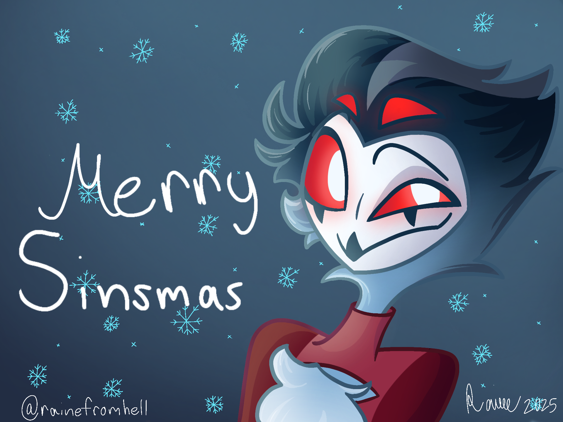 Guess who came back from the dead just to wish you a happy Sinsmas!I drew this instead of socializing with family for Christmas lmao #stolas #helluvaboss #fanart #hellaverse