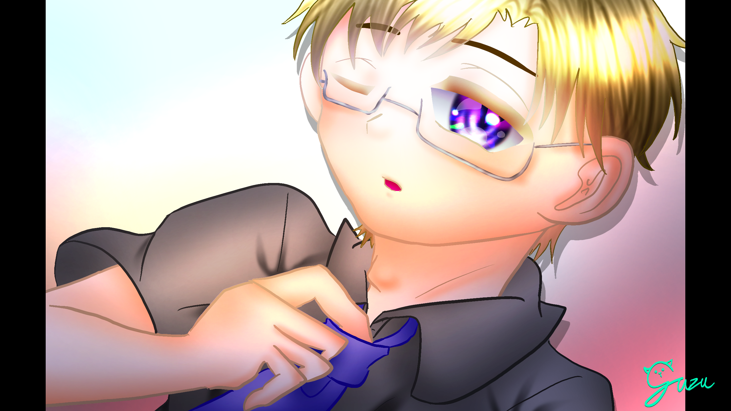 ゆずです(´`„・〒・„´`)男性をかっこよく描けなくて練習しました。キーボードが手元に無いのでコメント返信ストップ中です。青空高校の校長です。若いね。 #アオソラ