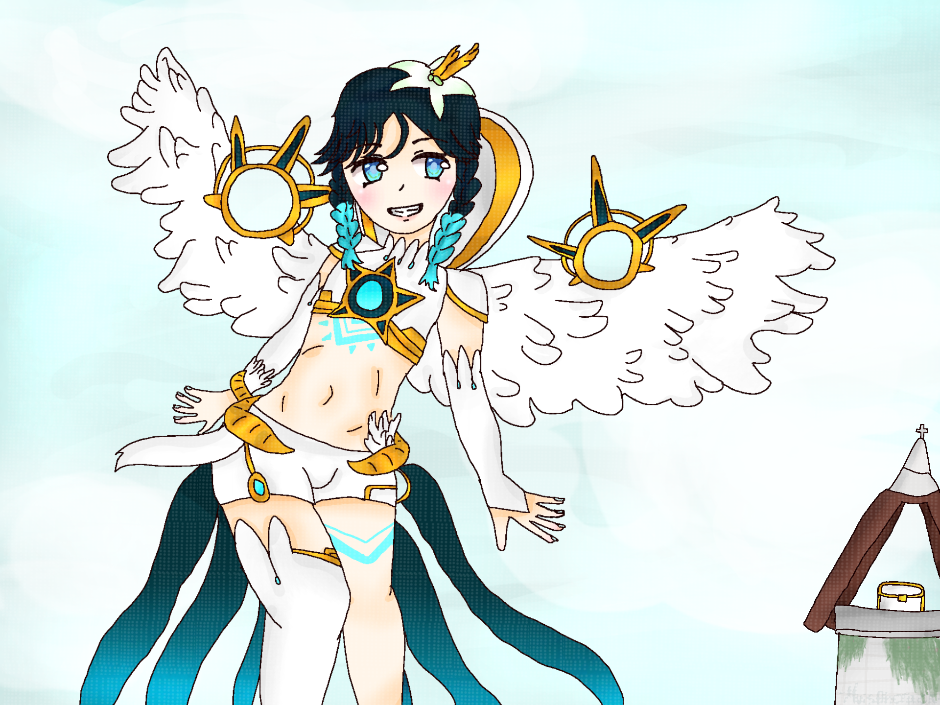 VENTIIIIIIIII!!! I love him so much :3 Any other genshin people I should draw? I was thinking xiao. Anyways, I feel like this took way to long. The backround lowkey sucks :broken_heart: anyways, I hope you all like it :D