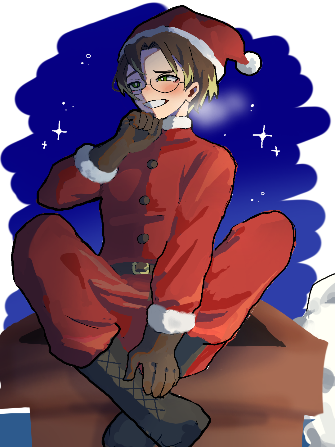 梅兄「サンタきっつ」さて皆さんメリークリスマスです!良いクリスマスを~!白い息描くの忘れてたので再投稿 #kuronekodaihuku-551