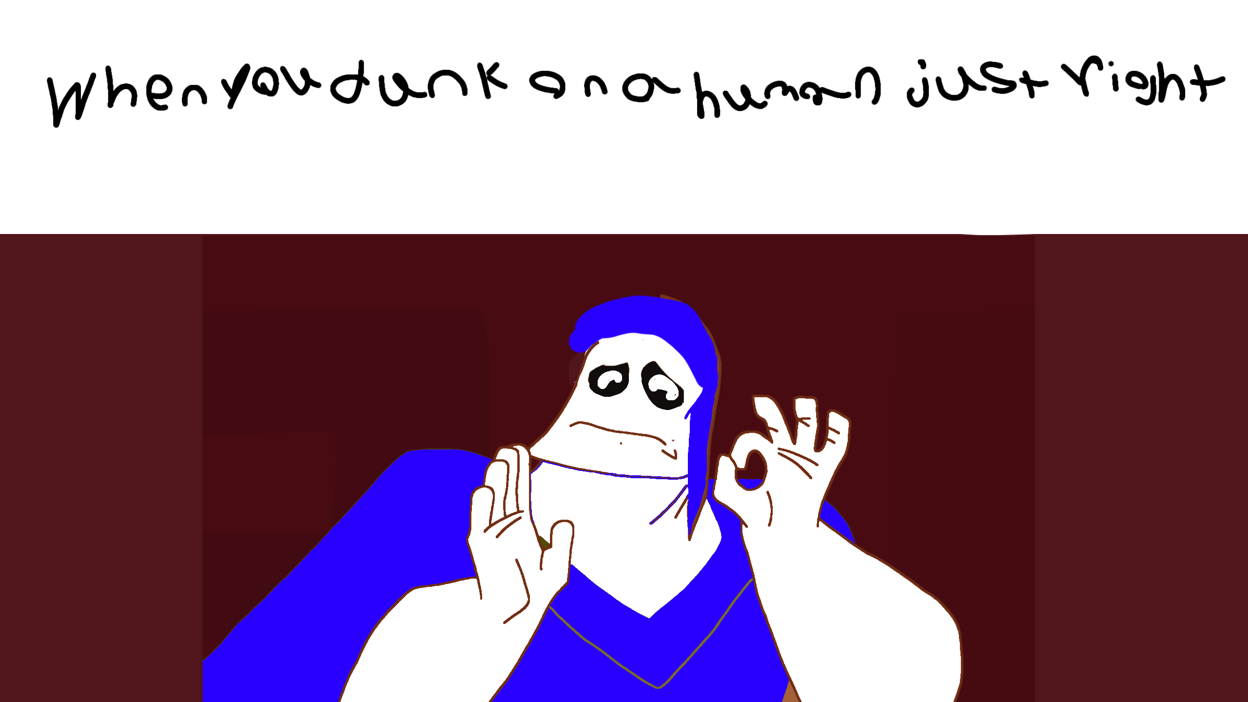 If you can't read what I put it says "When you dunk on a human just right" :D