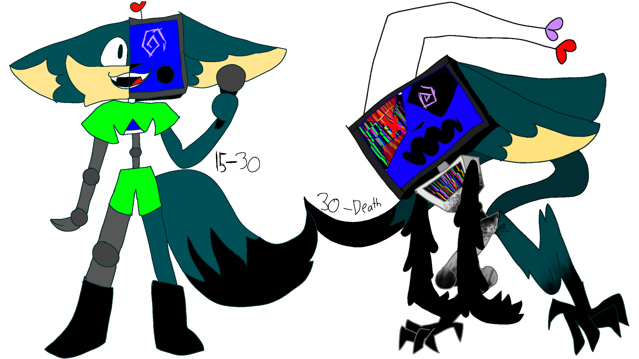 so practically airam is a cyborg already but when she is 13 she gets injured and becomes more cyborgish. when they are 15 they become a famous studio host and pop star.