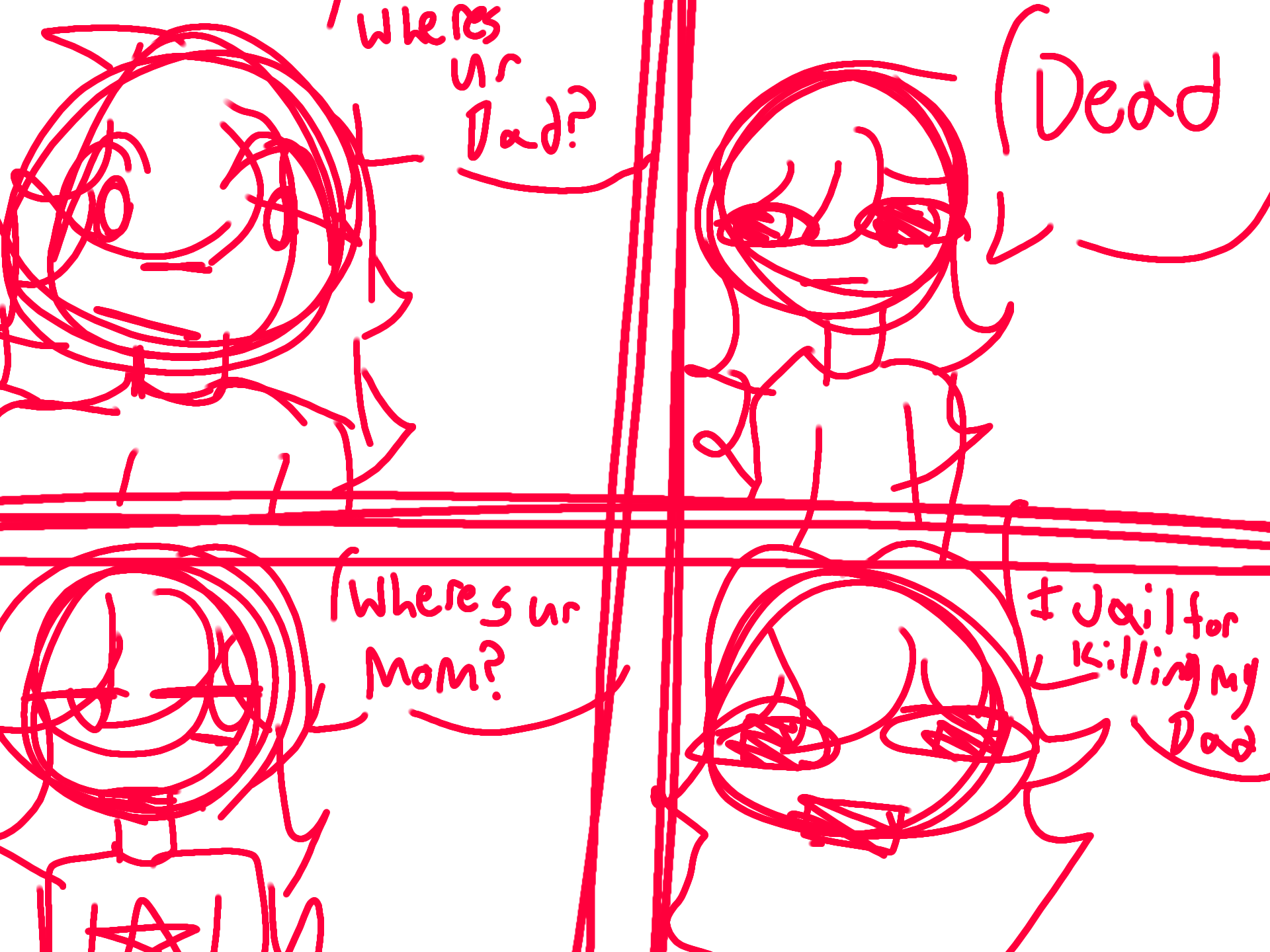 1: lisa: wheres your Dad?2: Kirko: Dead3: Lisa: wheres your mom?4: Kirko: in jail for k1lling my Dad