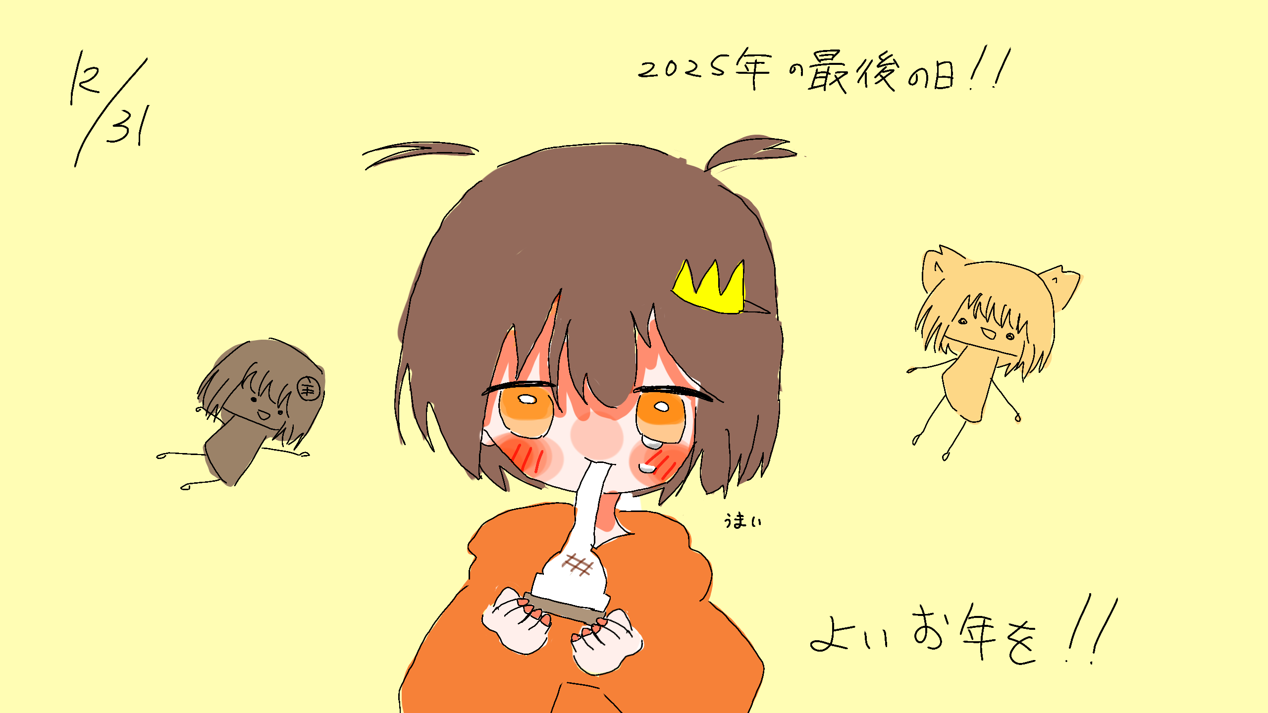 2025年も最後になってしまったぁよいおとしを~ #みつの代理くん #普通ぎつね速報朱理のアホ毛が2本になった