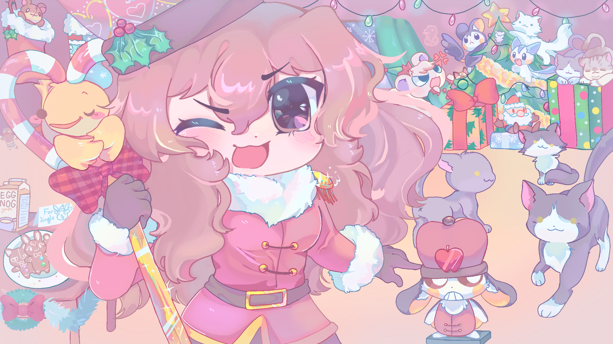 Thanks for the reminder to get myself more eggnog before its out of season , it norm doesnt last long at my house :laughing: Leave it to Salti to bring magic and good Christmas cheer amongst all the happy kitties and pokes w her lucky go ducky candycane magical stick *o* :sparkles: :duck: