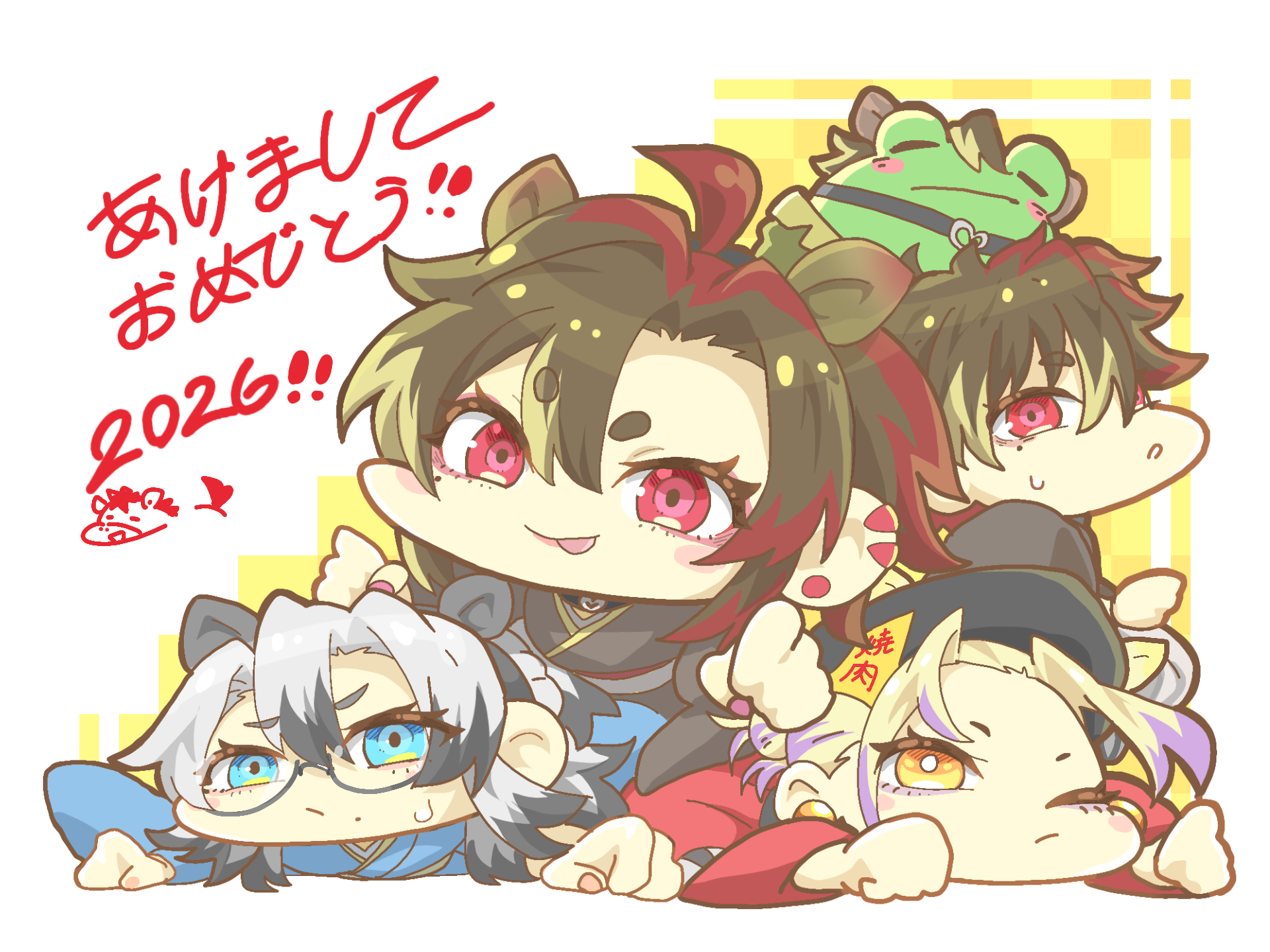 〜あけましておめでとことよろ♡〜お互い最高の2026年にしよな〜!!ンマ娘達とンマ息子とンマガエル、もちもちでかわいい…( ♥︎_♥︎ )♡