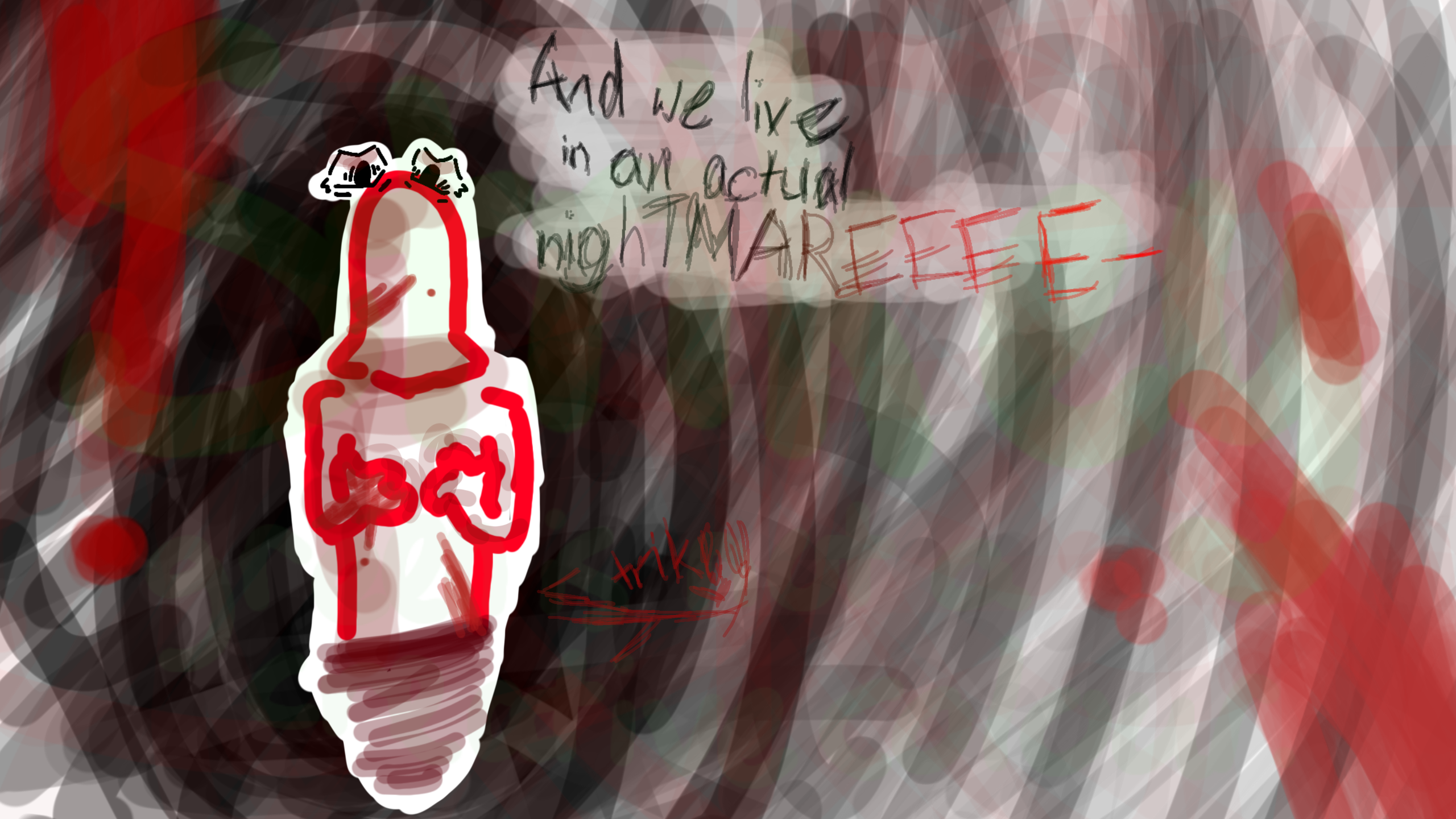 #DHMIS #DontHugMeImScared #RedGuy #Blood #Gore #Black #Red #Green #StrikeyArt