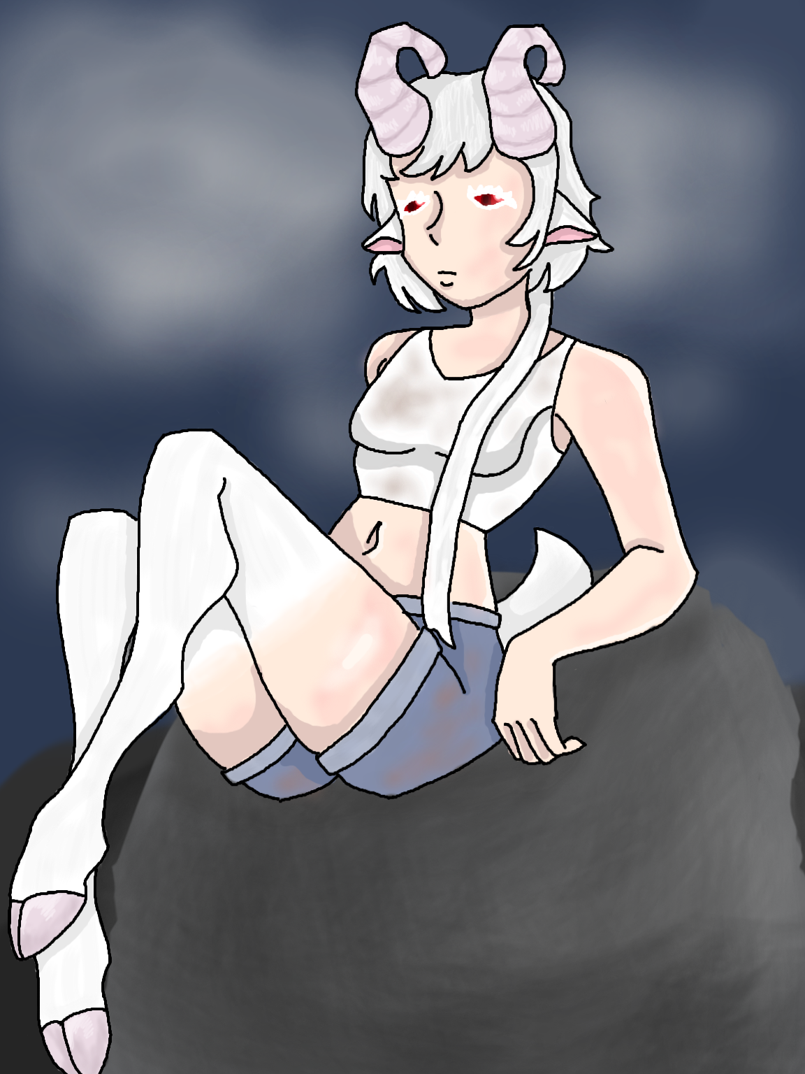 Goat on a rock, in the dead of night. —————— I just realized I could’ve erased some of the outline to make it thinner omg (I don’t feel like it though, i’m still pretty proud of it) #autmer #goat #night #rock #humanoid #girl #outside