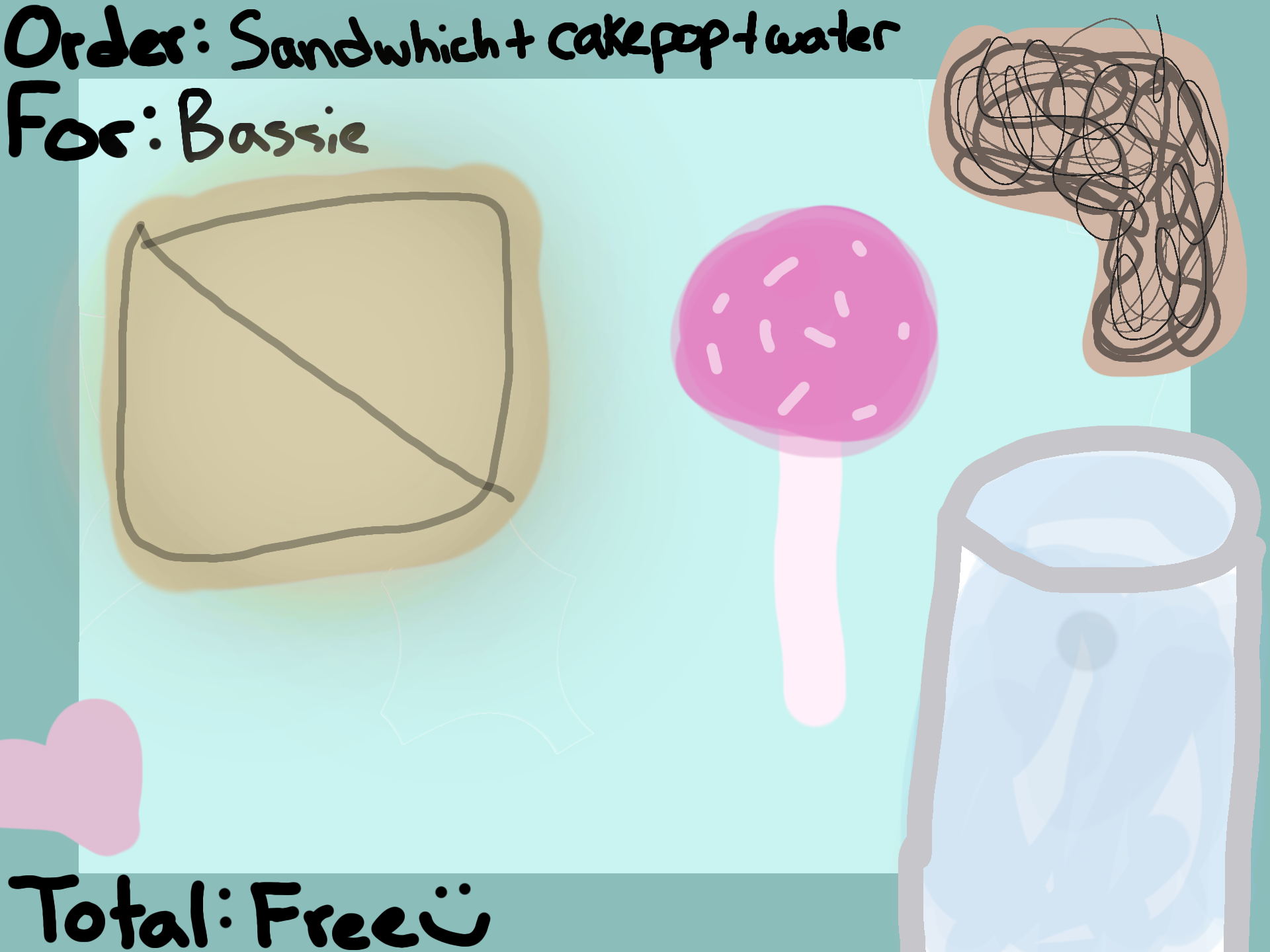 Order: sandwich + cakepop + water For: @Bassie_is_the_b45k3tSize: STotal: Free :heart: Made By: @thewesternblondeHave A Good Day!!! :) #ZoeOrderLayout #zoesespresso10