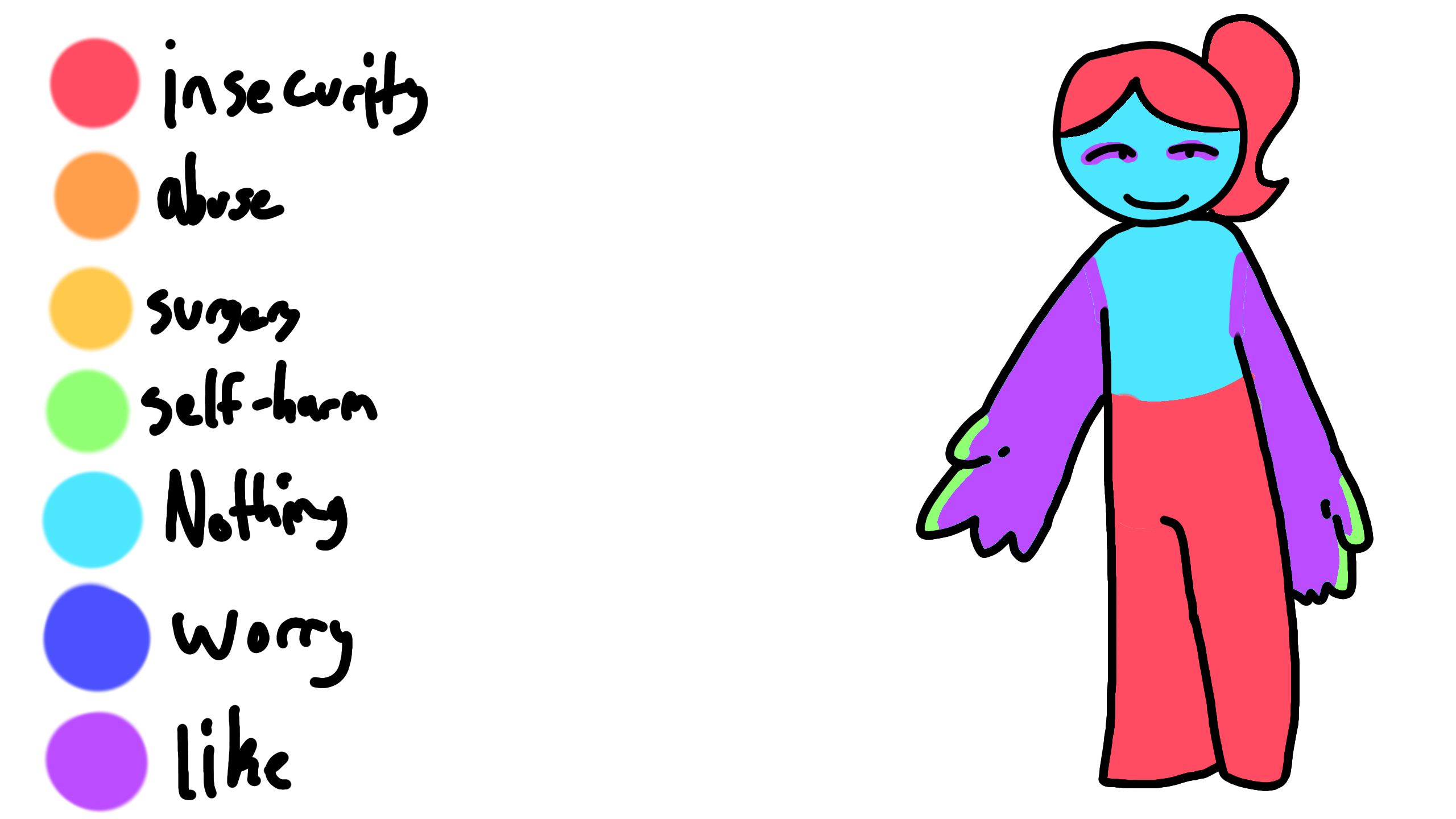 Mainly with the whole stomach to legs part, I normally have hairy legs that I forget to shave sometimes, so it always makes me a bit worried, and for my stomach, it's something related with weight sometimes-