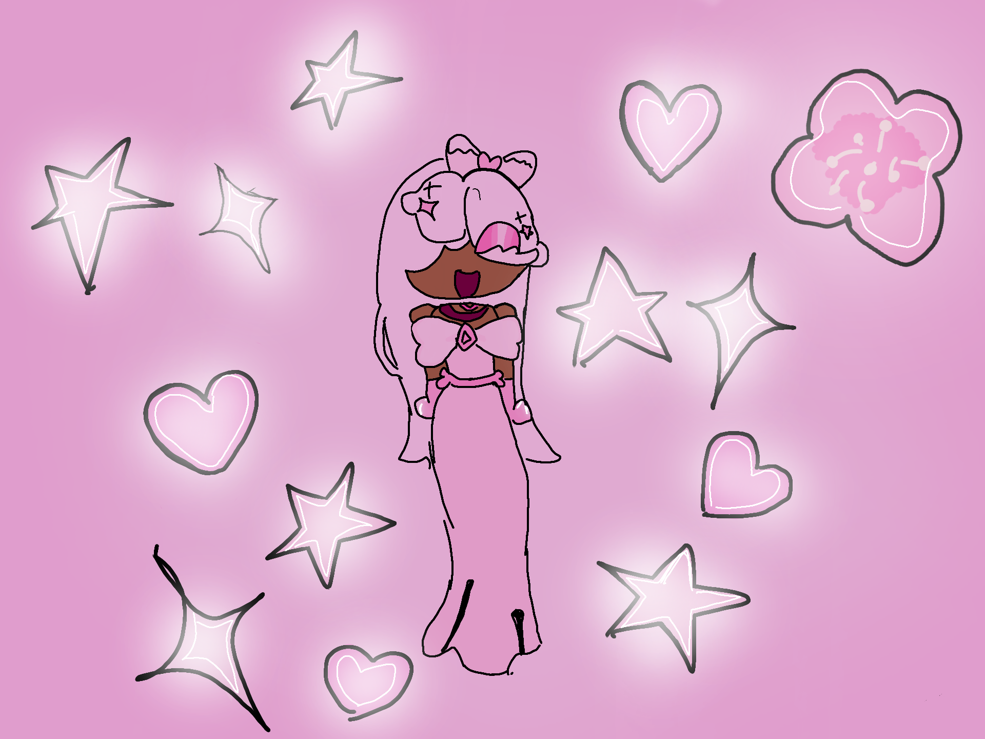 one perfect girl. SHES SO PRETTYYYYY ;] ">V<" #pink #flower #hearts #stars