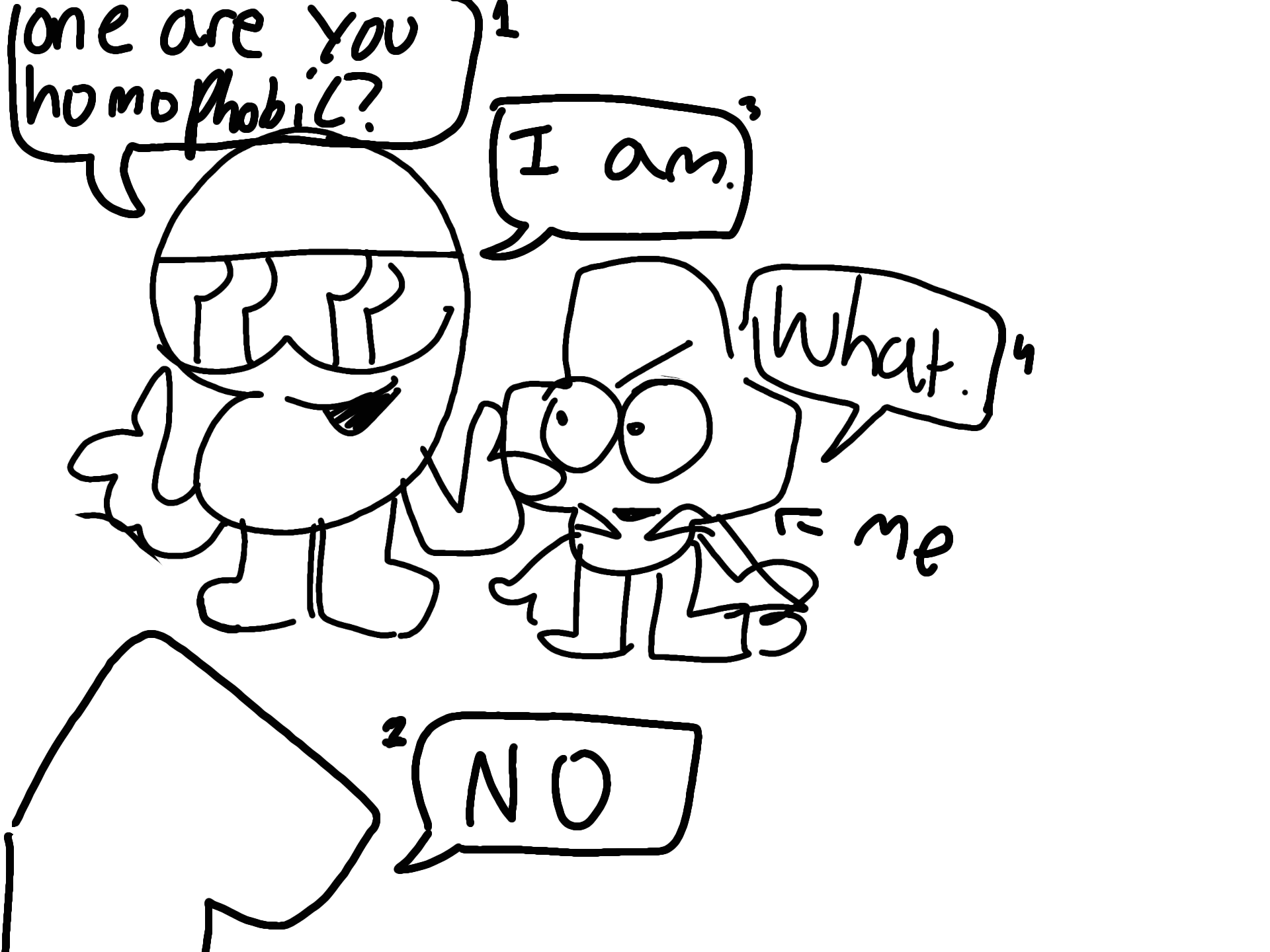 and they were talking to a one and said "one are you h omo phobic" and when one saud no nine said "well i am"