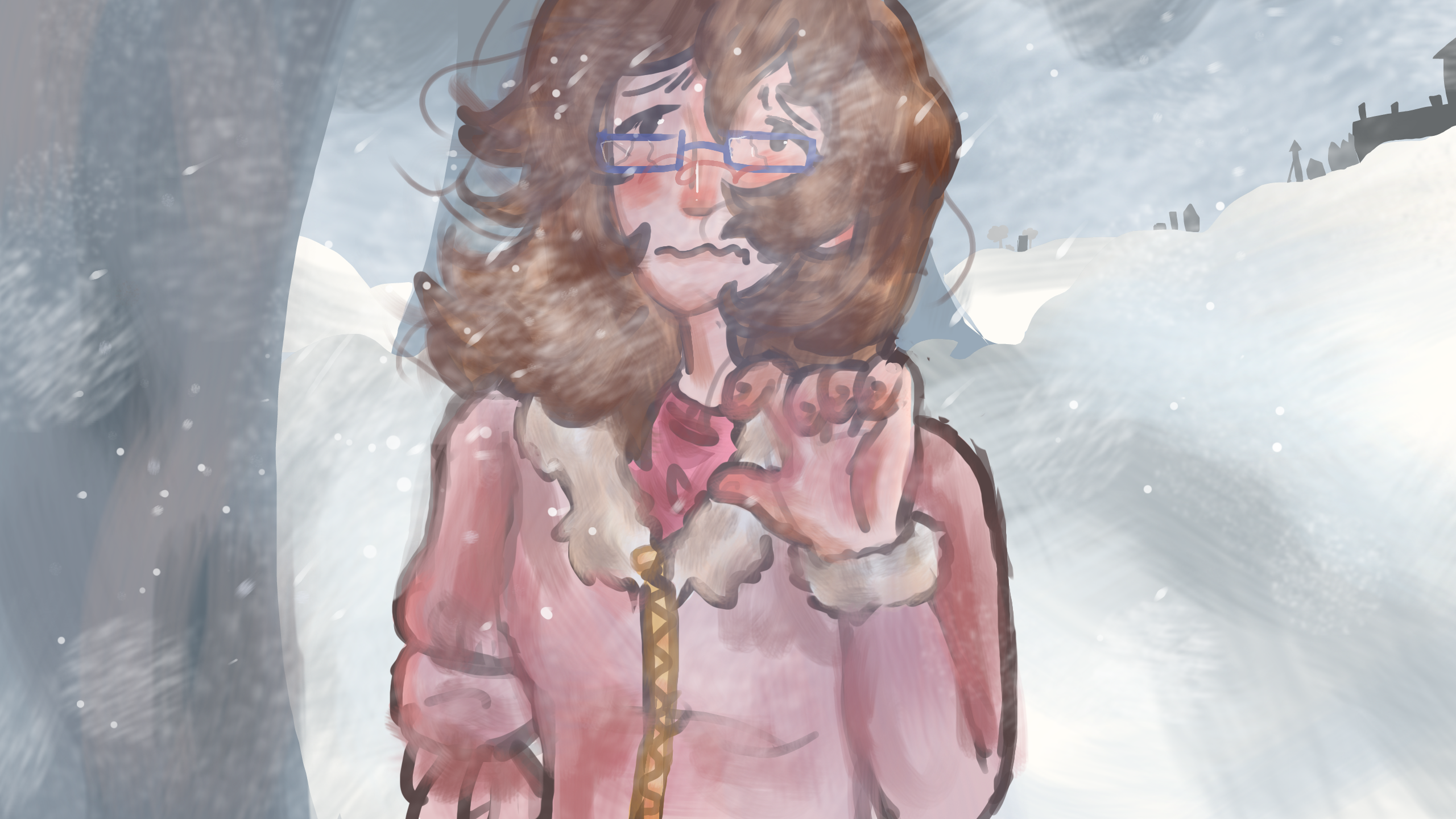 I loved drawing the snow even though I'm not very well versed in drawing backgrounds or weather effects.