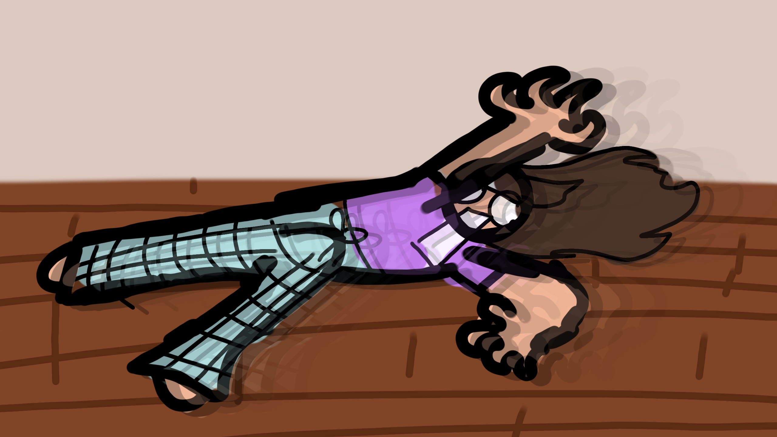 i threw my sister's stuffed animal across the room like the sweet and kind sibling i am, then we raced to get it, but since my pants were too long, i SLID ACROSS THE FLOOR AND SHOVED MY PINKY TOE INTO THE CORNER OF SOMETHING