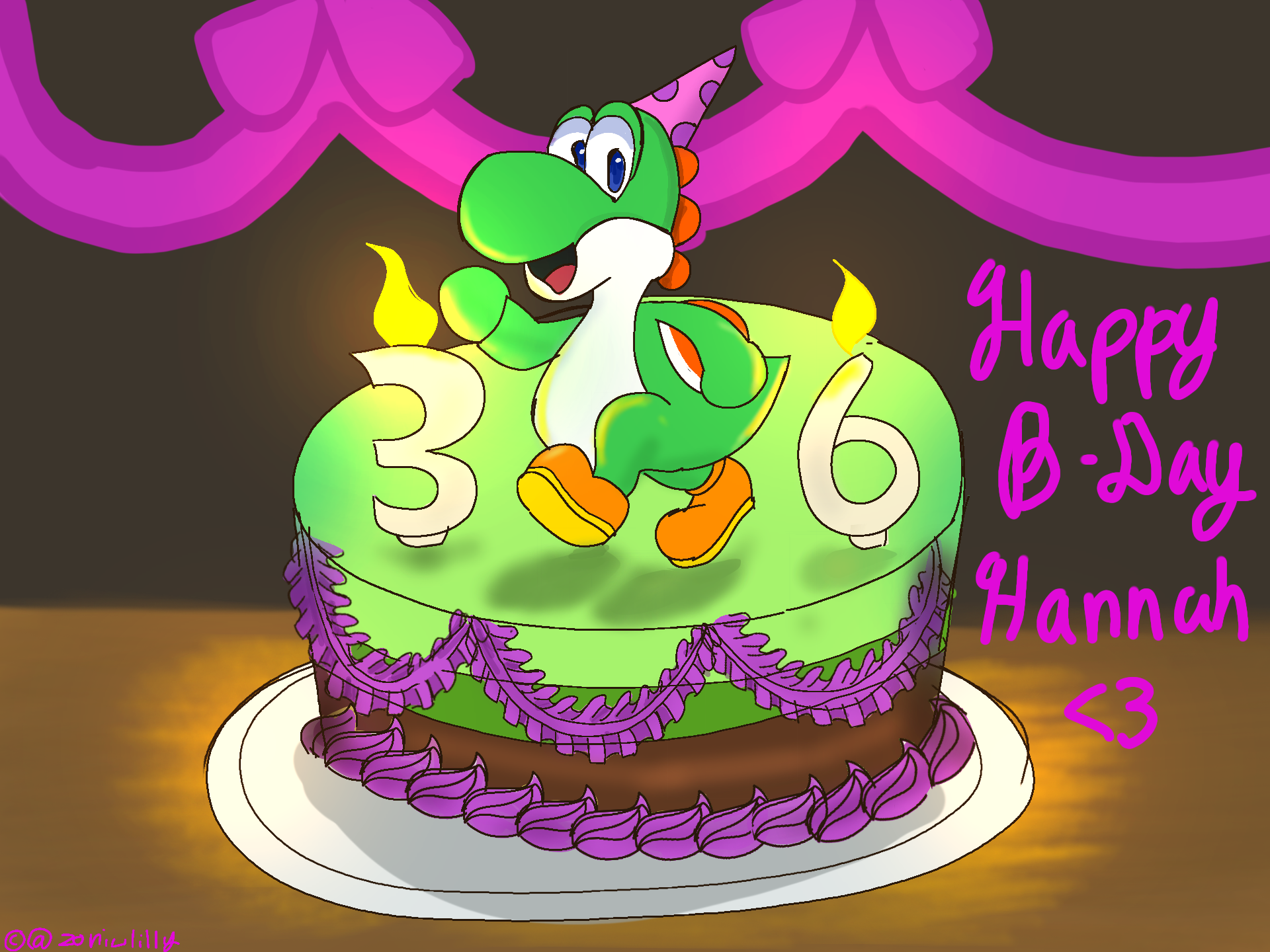 OMG! Thank You Sooo Much for this Awesome Birthday Cake! I LOVE it! I like Purple frilly icing against the Green!