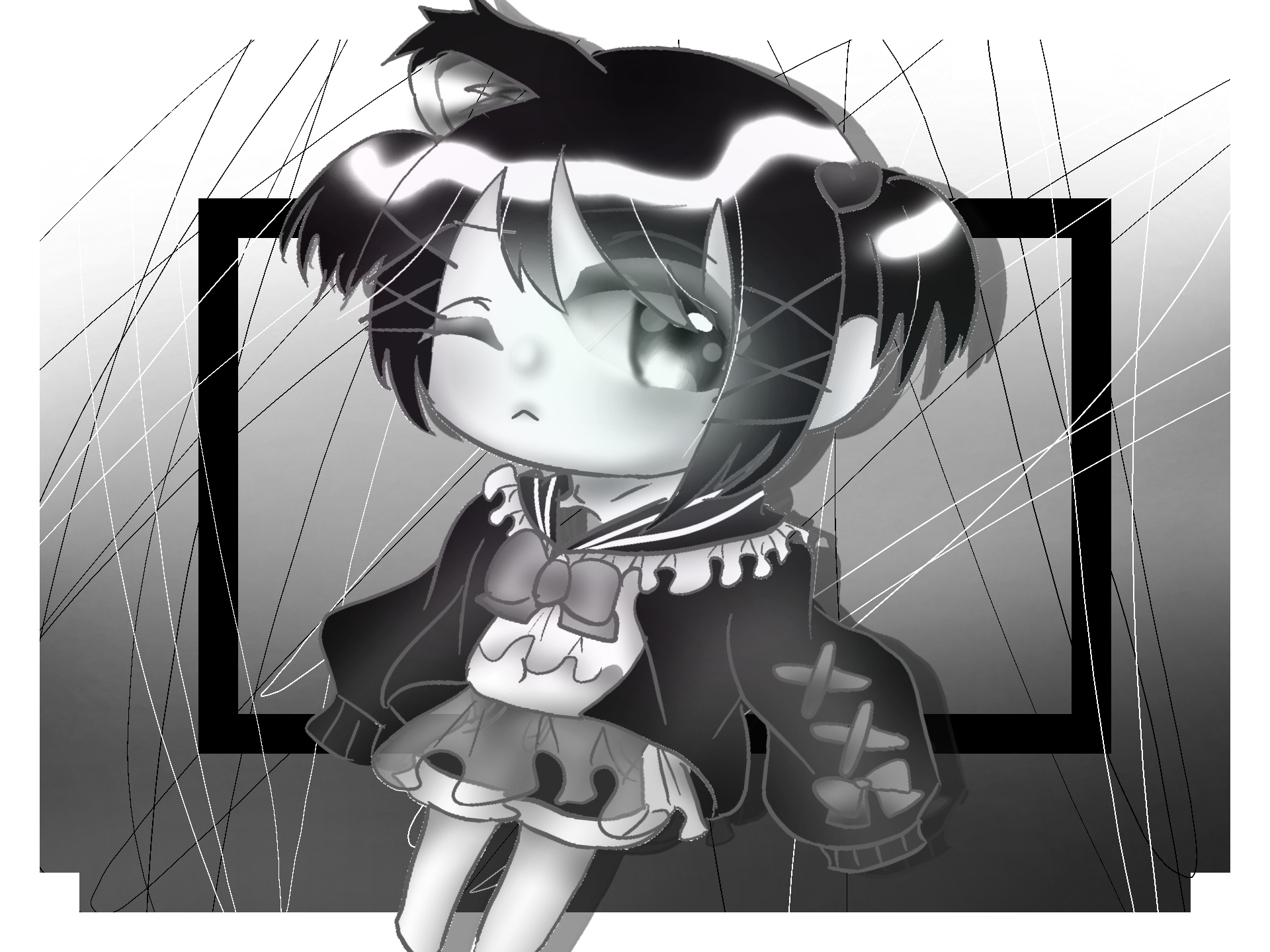 @-wain- ちゃん:love_letter:描きました~!!!ミニキャラそのままでごめん()また機会があれば等身も描こうと思います:sparkles:モノクロでどこまで表現できるか塩梅を調整したよ~!!! #モノクロの猫