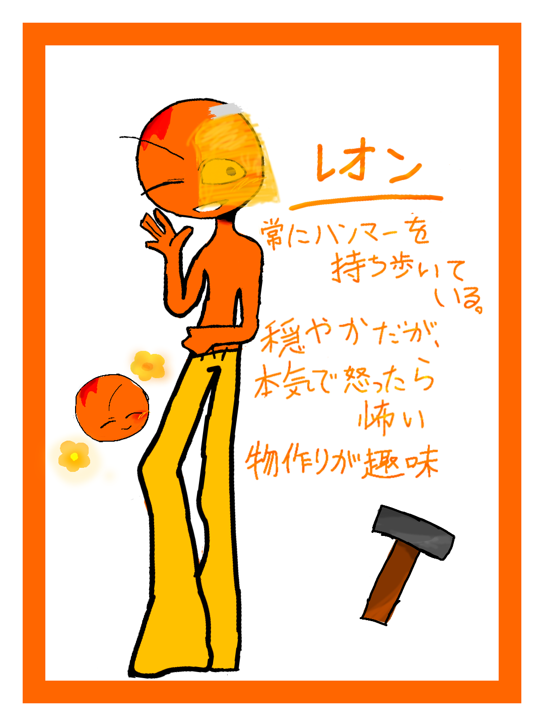 ちなみに頭の左上の赤いとこは幼い頃に負った火傷ですッ字下手ですけど許してクダサイm(_ _)m(勿ノ論絵も下手デスガね) #oc