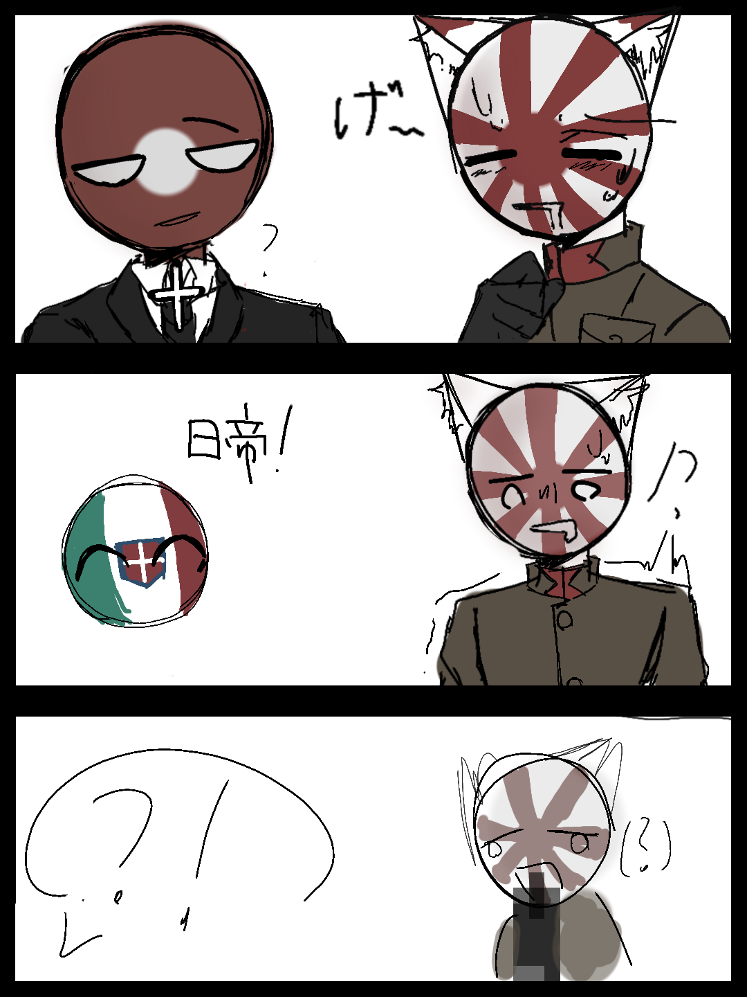日帝が毛玉詰まって吐きそうなと頃にイタ王がにっーーーてって叫んで吐いたやつだと思う