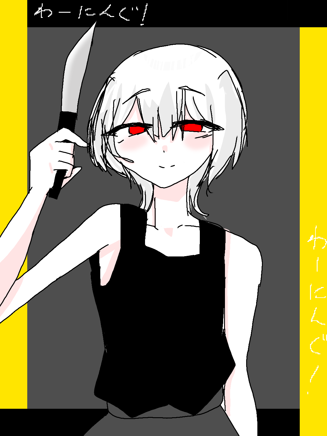 素敵な素材をありがとう!わたしも刃物持ってる狂人的なキャラ大好き!このイラストには癖をいっぱい詰めたよ!まじで同じ性癖が多くてうれしいよ~!素材ありがとう!描くの楽しかったよ!