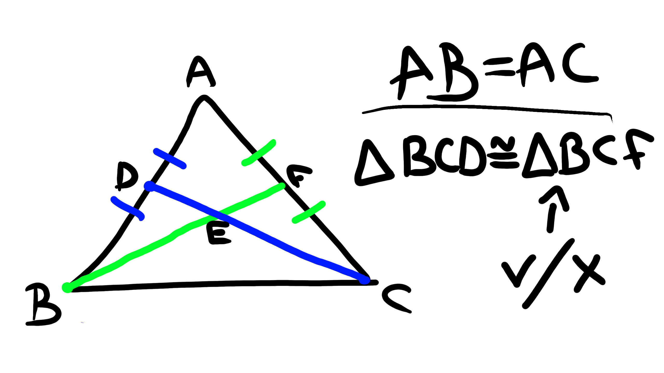 if the a line can connect D and F while being parallel to the side BC it's true bc it's an isoscel triangle so yeah