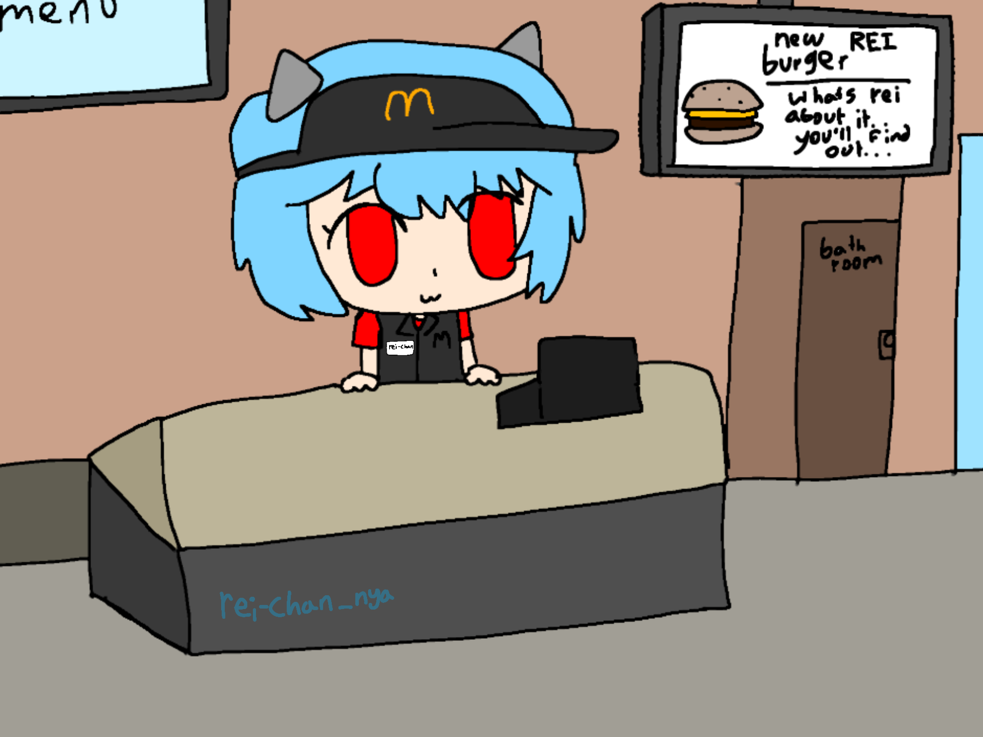 @raiNz okayz,,, *pulls out burger and hides underneath table and does SOMETHING* ok here rei burger, thatll be 500¥