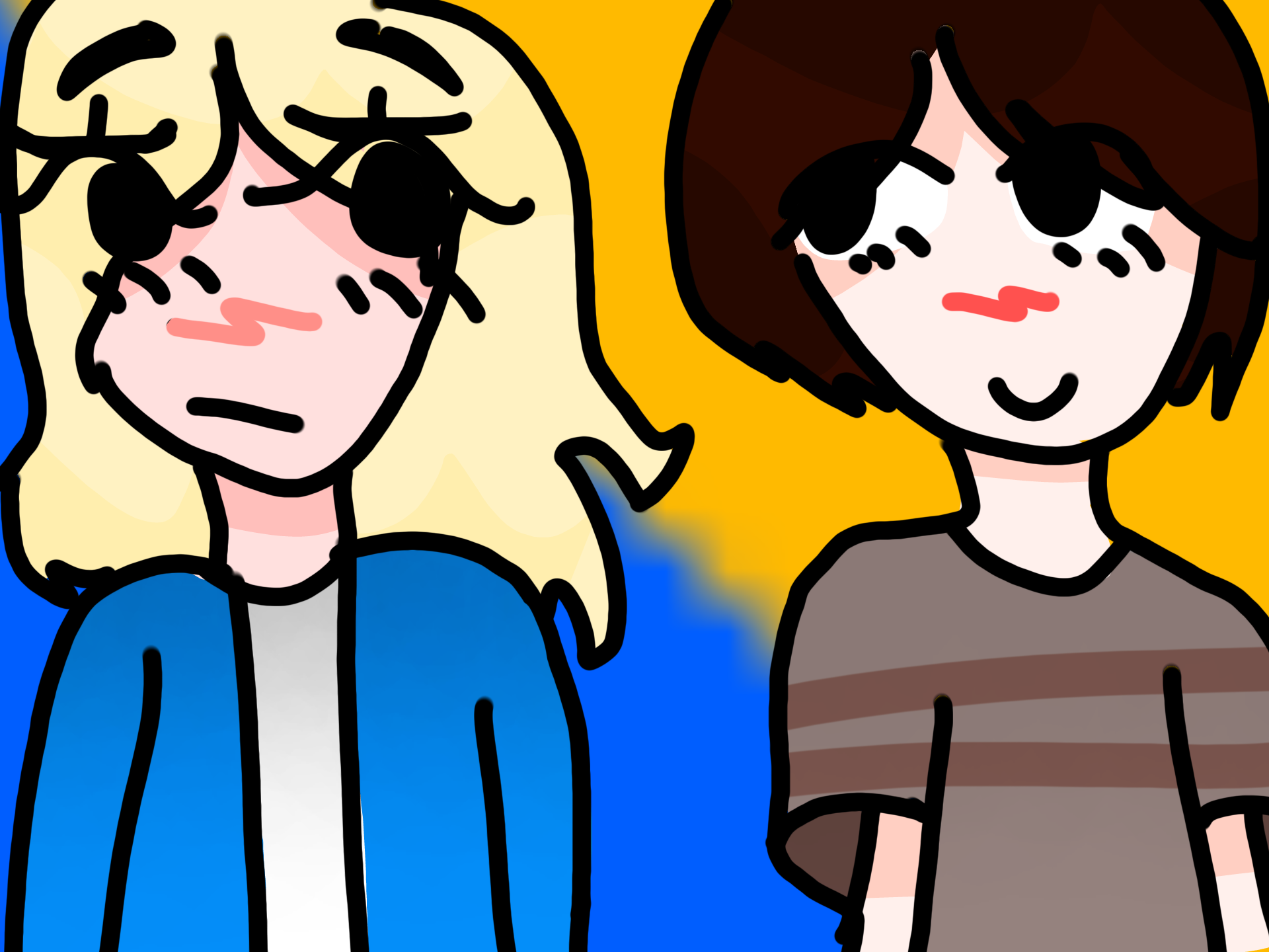 "meet me in the bathroom i wanna be alone with you!" "i dont care much adout you.."holly and gergwith a blyer background IMA MAKE BLYER FAN ART TRUST