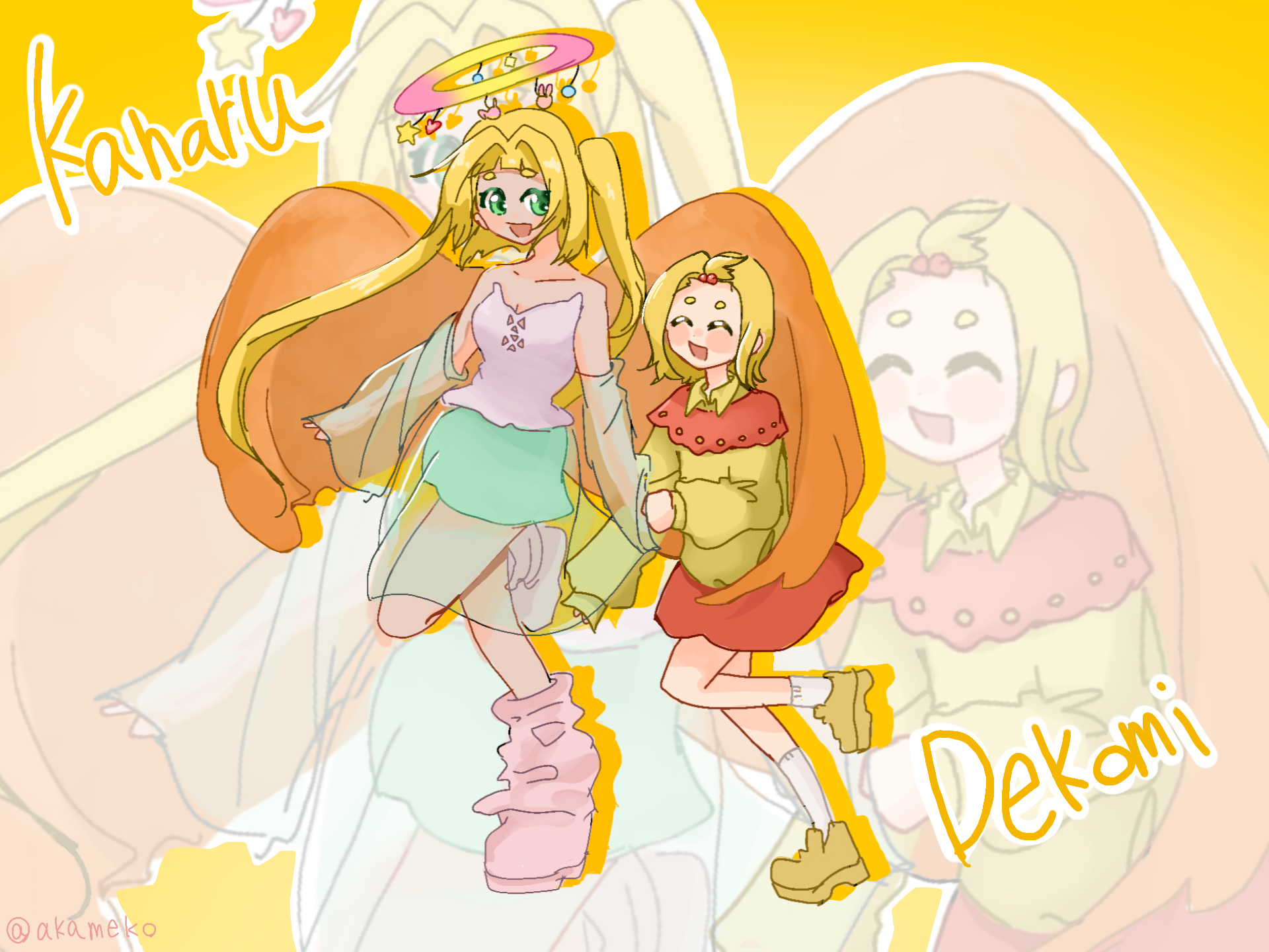 かなるとでこみちゃんの愛♡の絵です!!結構気に入ってる~!これネップリ(コンビニプリント)にします!!! 番号はまた公開するので待っててください #天兎かなる #檸檬田でこみ #かなでこ #あかめこのネップリちなみにかなる→♡←でこみだからね♡♡♡♡両片想いってやつですよひへへへへへへへ