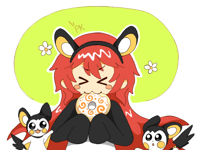 I gave ya an emolga outfit with a spinda doughnut!! > w < the base of the doughnut has a hint of lemon and the frosting is vanilla with orange swirls themed after spinda! o w o hope ya like it! :'D