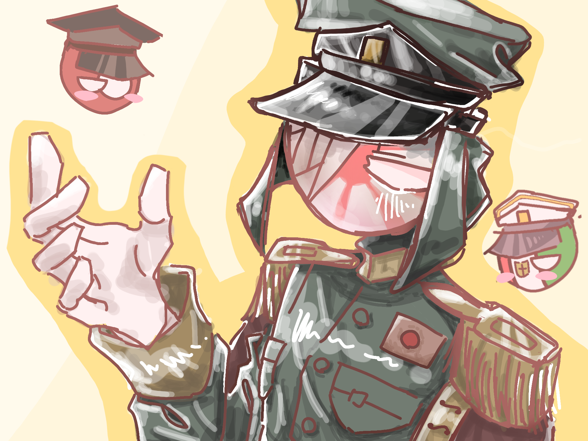 ウアアアアア泣めちゃくちゃ好きです:sob: :sob:枢軸揃ってんの神過ぎませんか((号泣))日帝のキャラデザ凄く好きです...:sob:本当にうっちー様が描いたカンヒュドタイプです; ;雰囲気もとても暖かくて(?)本当にかみすぎます...........本当手好きすぎます......。。。絵柄もめちゃくちゃ好きです;;;:sparkles: :sparkles: