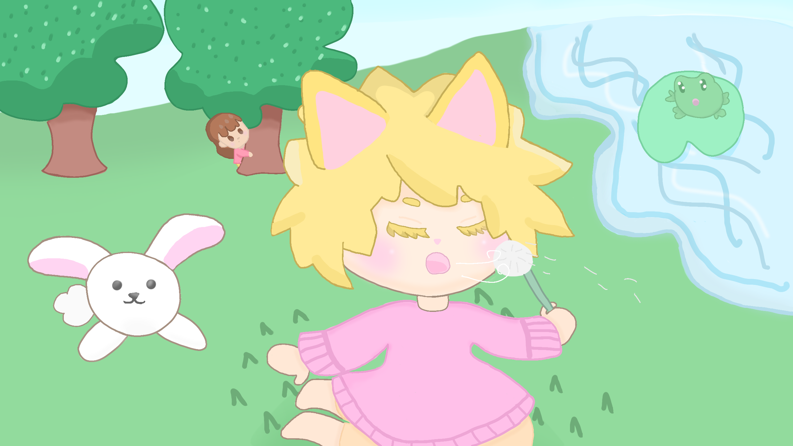Here you go @Aidrea picture of child #meya and child #Neuelle in the background #Forest #Animals #Frog #Bunny #lake