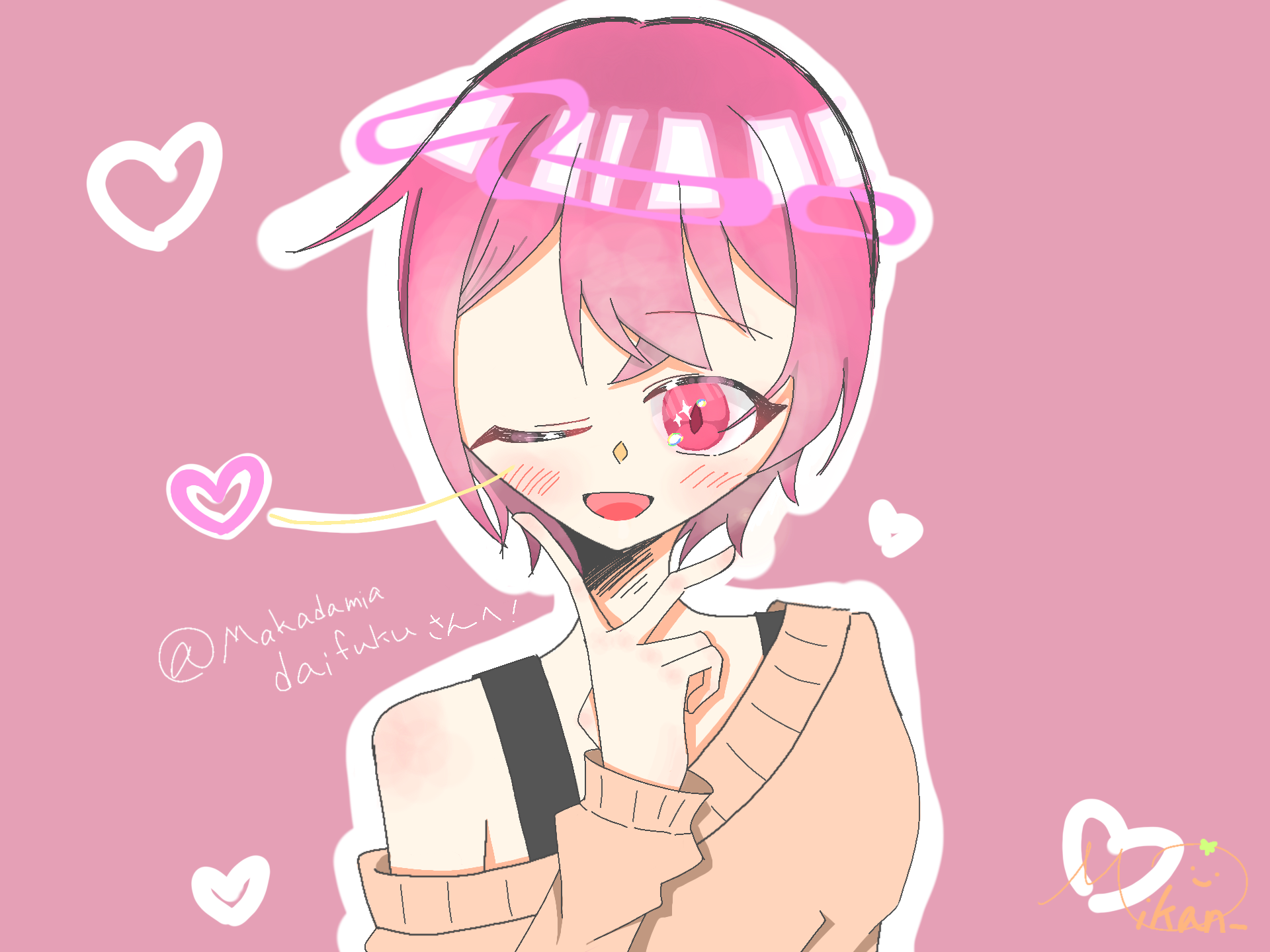 @Makadamiadaifukuできました!この子って女の子ですよね…?男の子でしたら描きなおしますので!あと、この子のタグの漢字の読み教えてくれませんか?漢字苦手でして… #大離散