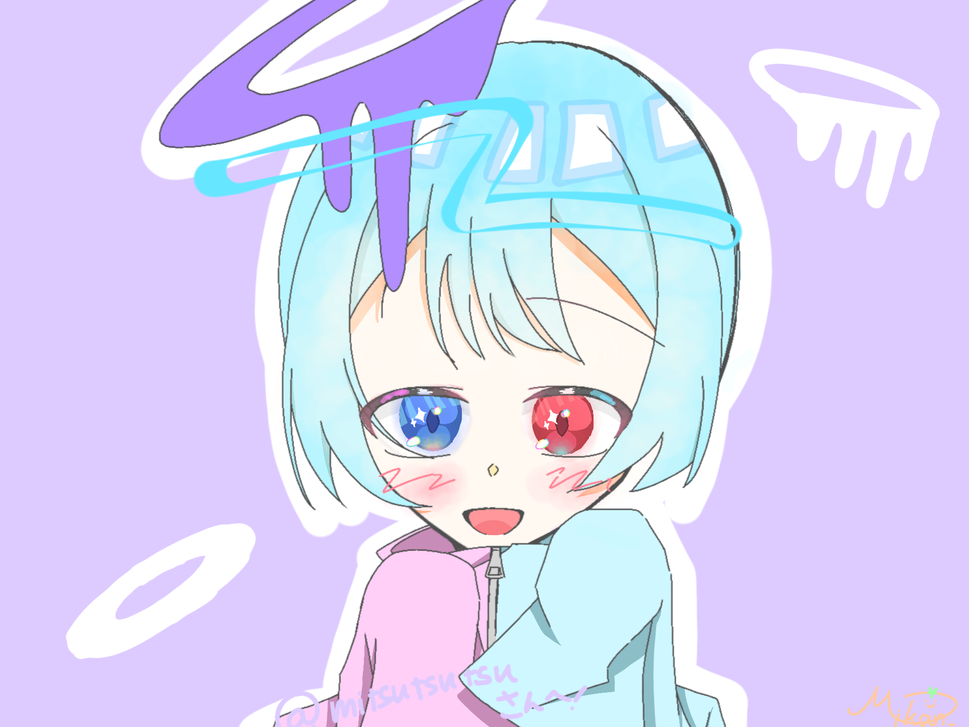 @mitsutsutsuできました!どうでしょうか!オッドアイ描くの楽しかったです!リクエストありがとうございました!! #悪魔天使