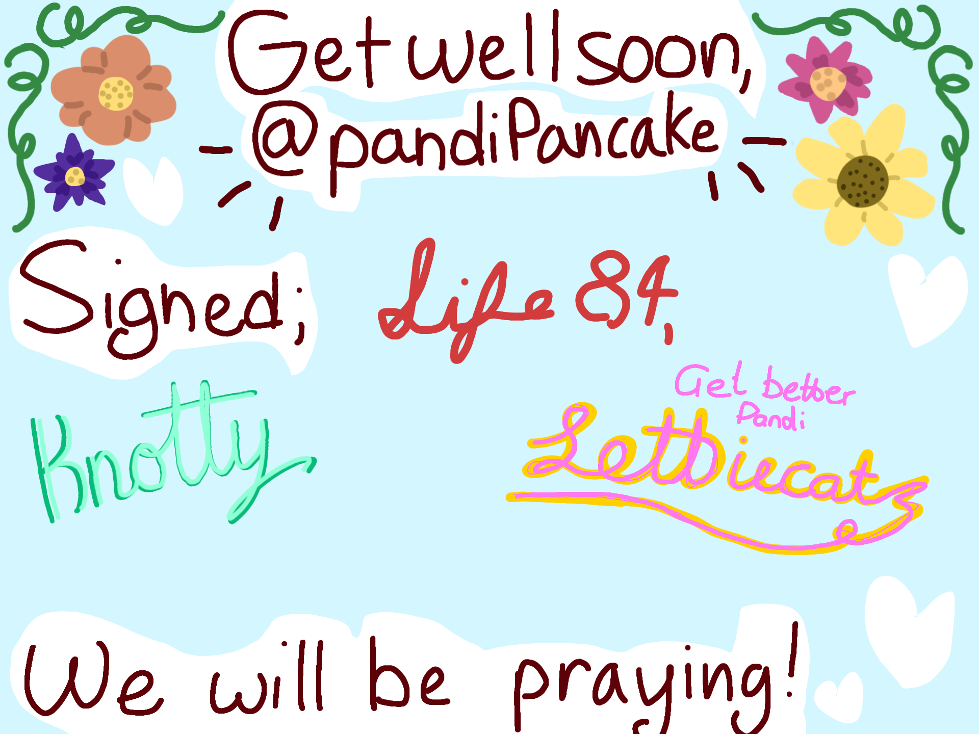We love you, and hope u get well :'(