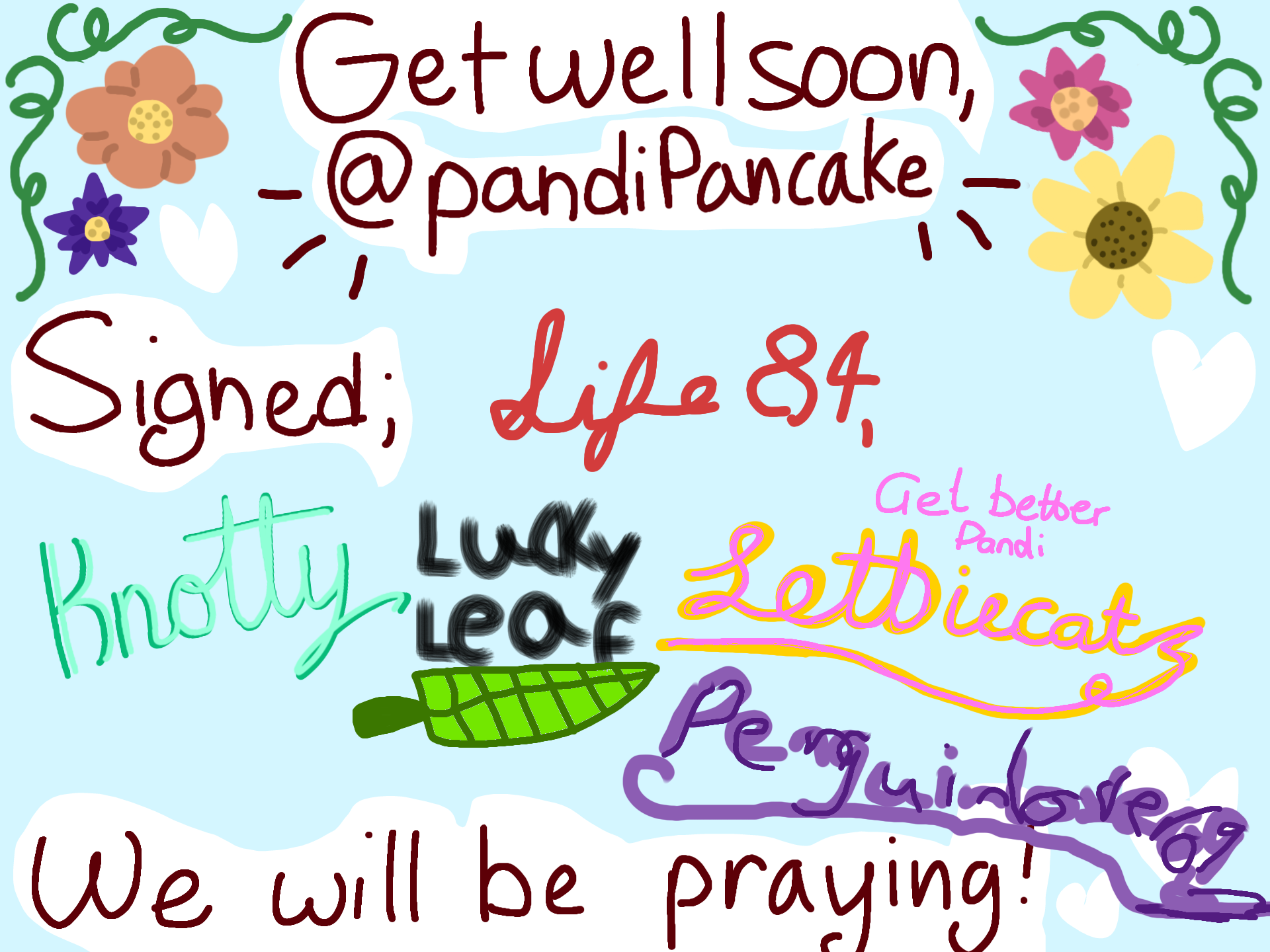 We love you, and hope u get well :'(