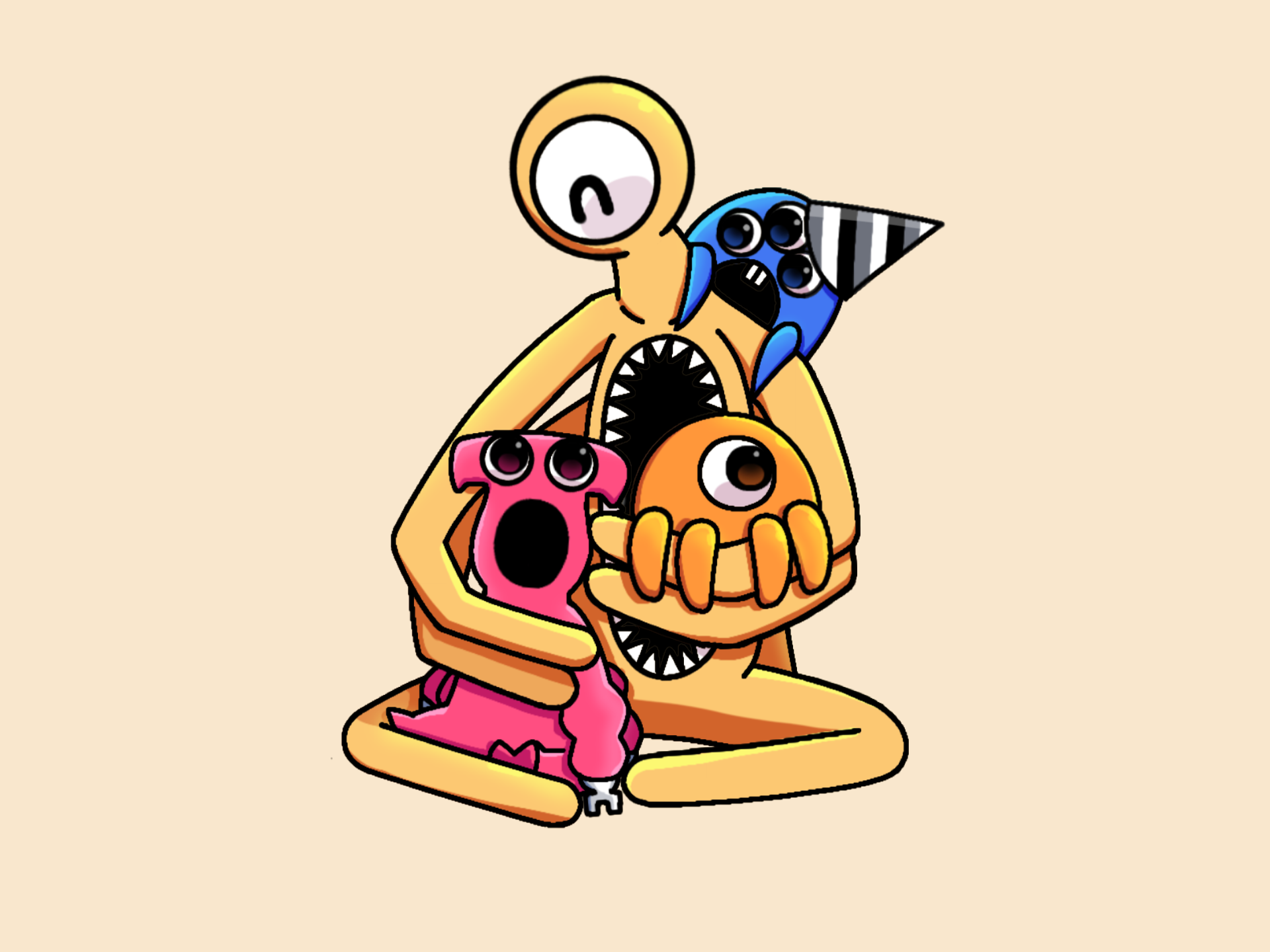 ちなみにこのキャラは「オスカースタ」っていってーこの三人のキャラデザの元となった没キャラです。口はナブに、単眼はフリンに、腕はジョンに、って感じ。なので自分の推しのキャラデザの元となったオスカーは自分にとって三人の父親同然です(((((((((((((((((((((((((((((