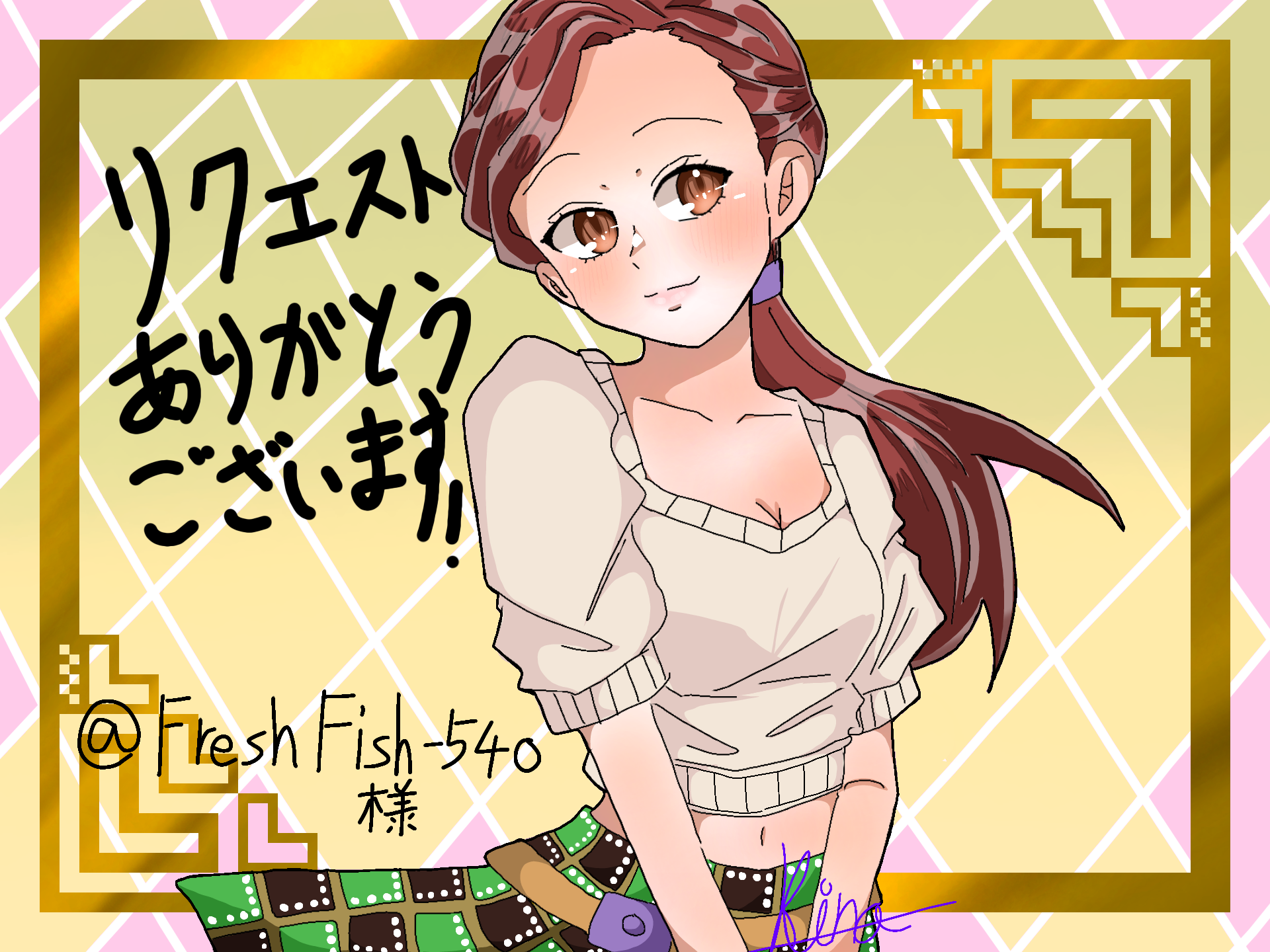 リクエストありがとうございます!ジョジョの4部、川尾しのぶちゃんです!鮮魚さんの描く絵はすごくていつも見るたびに尊敬してます!メッション失礼します! @FreshFish-540