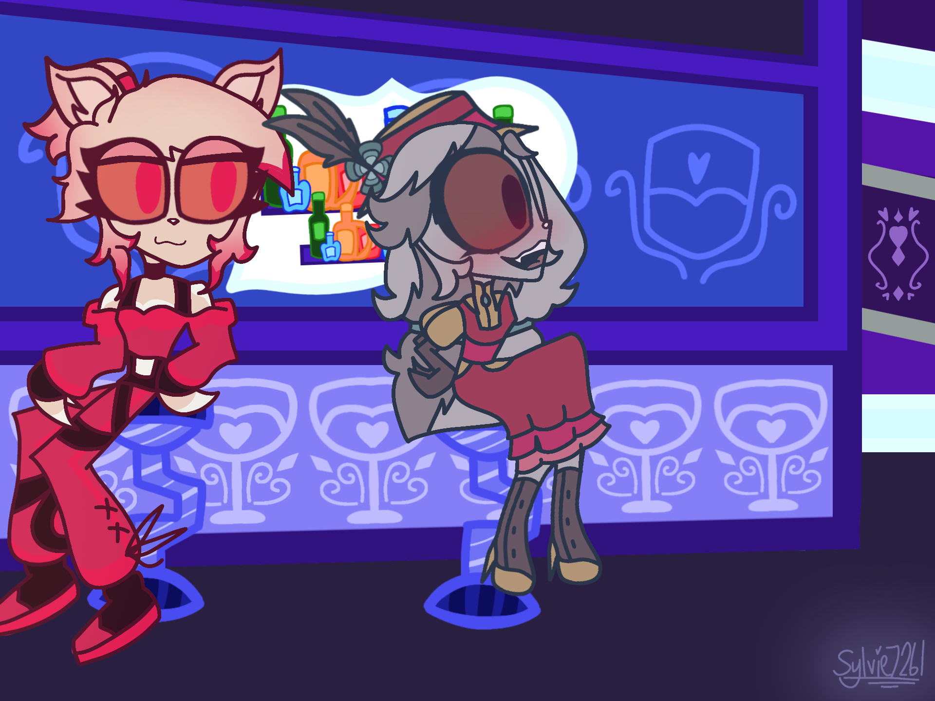Alice is a artic fox so shes able to dye her fur easily so during turf wars in wrath she would cover her fur in dust so she can hide and sneak attack. Annabell was a victorin girl who died at a young age due to sickness. Due to her vulnerability, Alastor makes a deal with her that if he protects her, her soul belongs to him.
