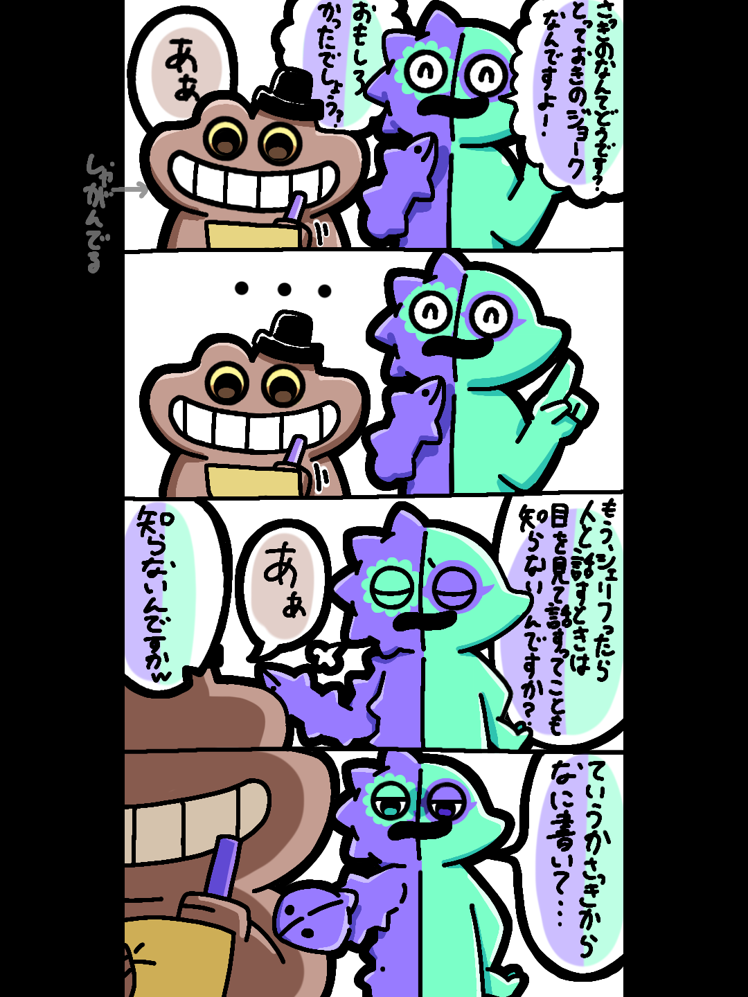 <English> giggle: what do you think of the one? it was a special joke!! wasn't it fanny? sheriff: yeah. (silence) giggle: don't you know that if you speak to a sheriff, you should look him in the eye? sheriff: yeah. giggle: you don't know lol giggle: by the way, what have i been writing so far...