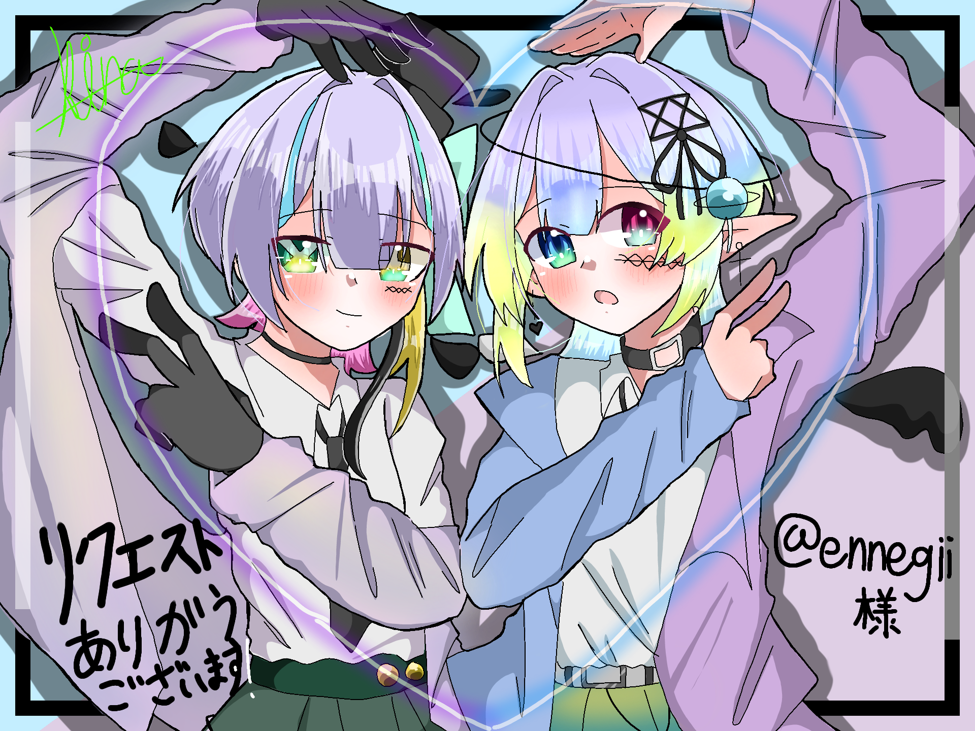 えんねぎさんの代理、雨羽ちゃんと赤石ちゃんです!!どっちとも可愛かったのでもう一緒に描きました