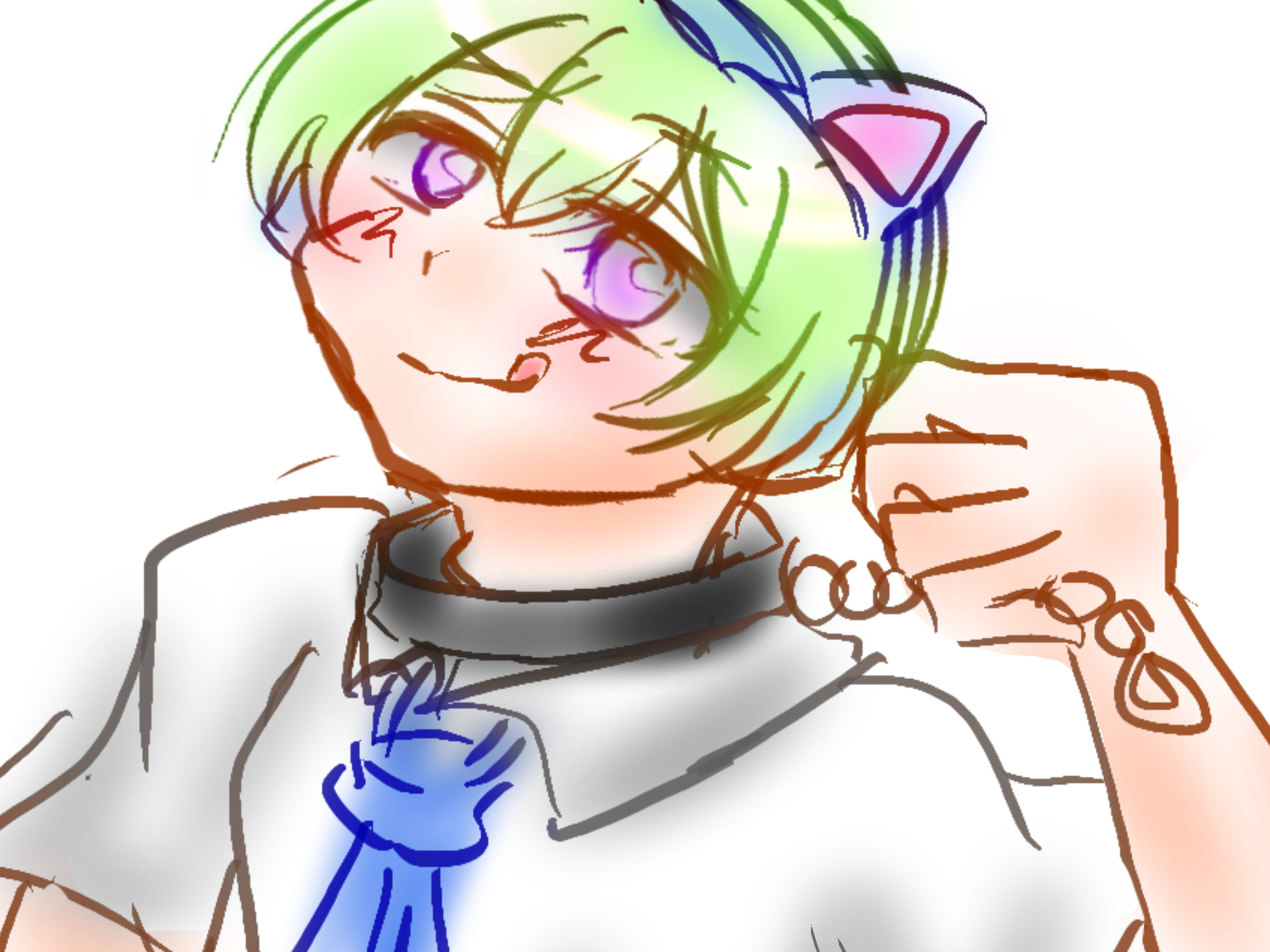 ゆずです(´`„・〒・„´`)ラフです。構図的に大丈夫かどうか勝手に不安になってます()規約的には大丈夫でしょ!!^^プレバしたらわかる通り、膝ついた構図だったんですけど引きの構図は塗り込みにくくて苦手なのでカットしました>< #落書きの留置場