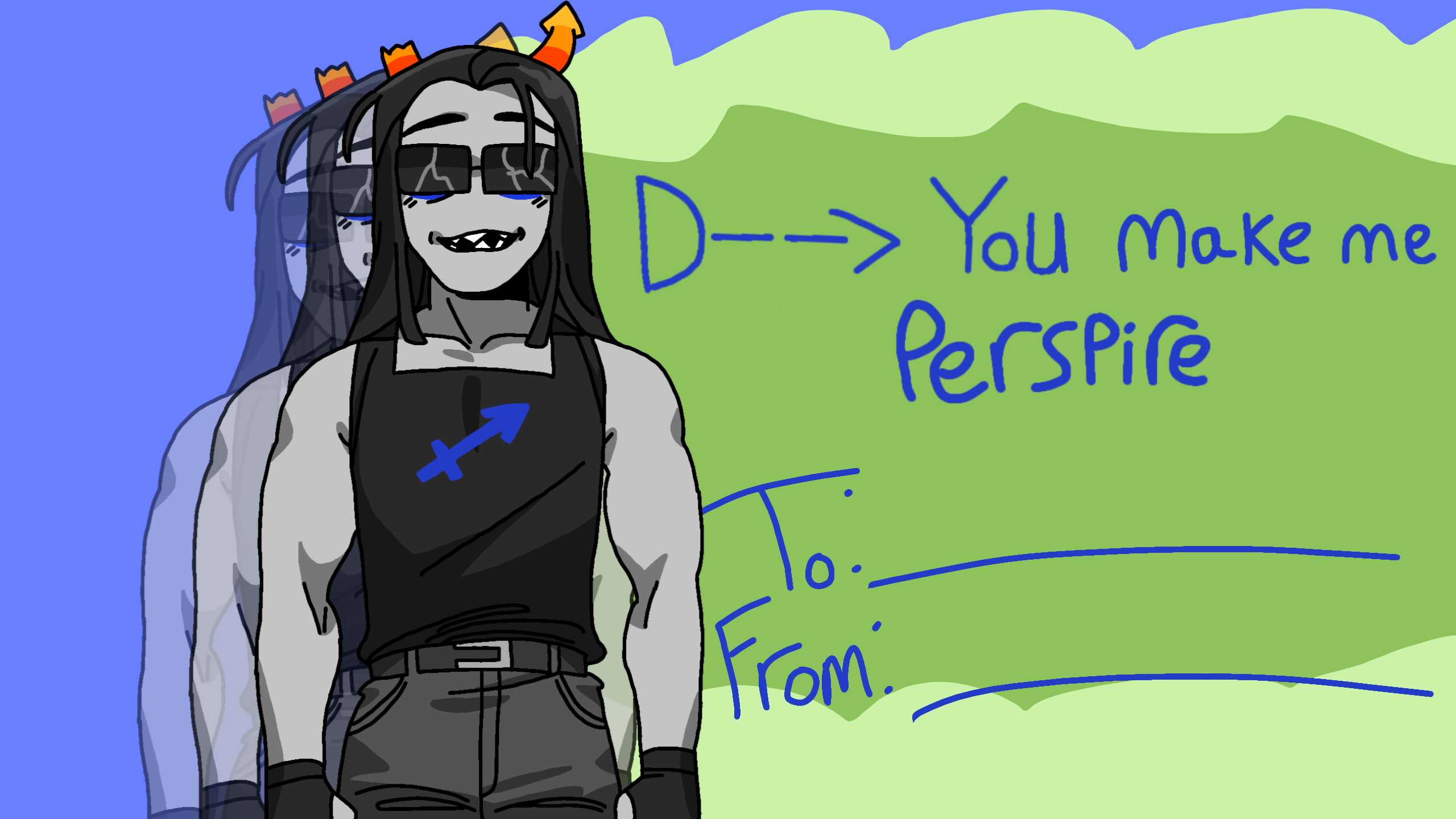 perspire means sweat btw, for the unknowledgeable ones #homestuck #valentines #equius