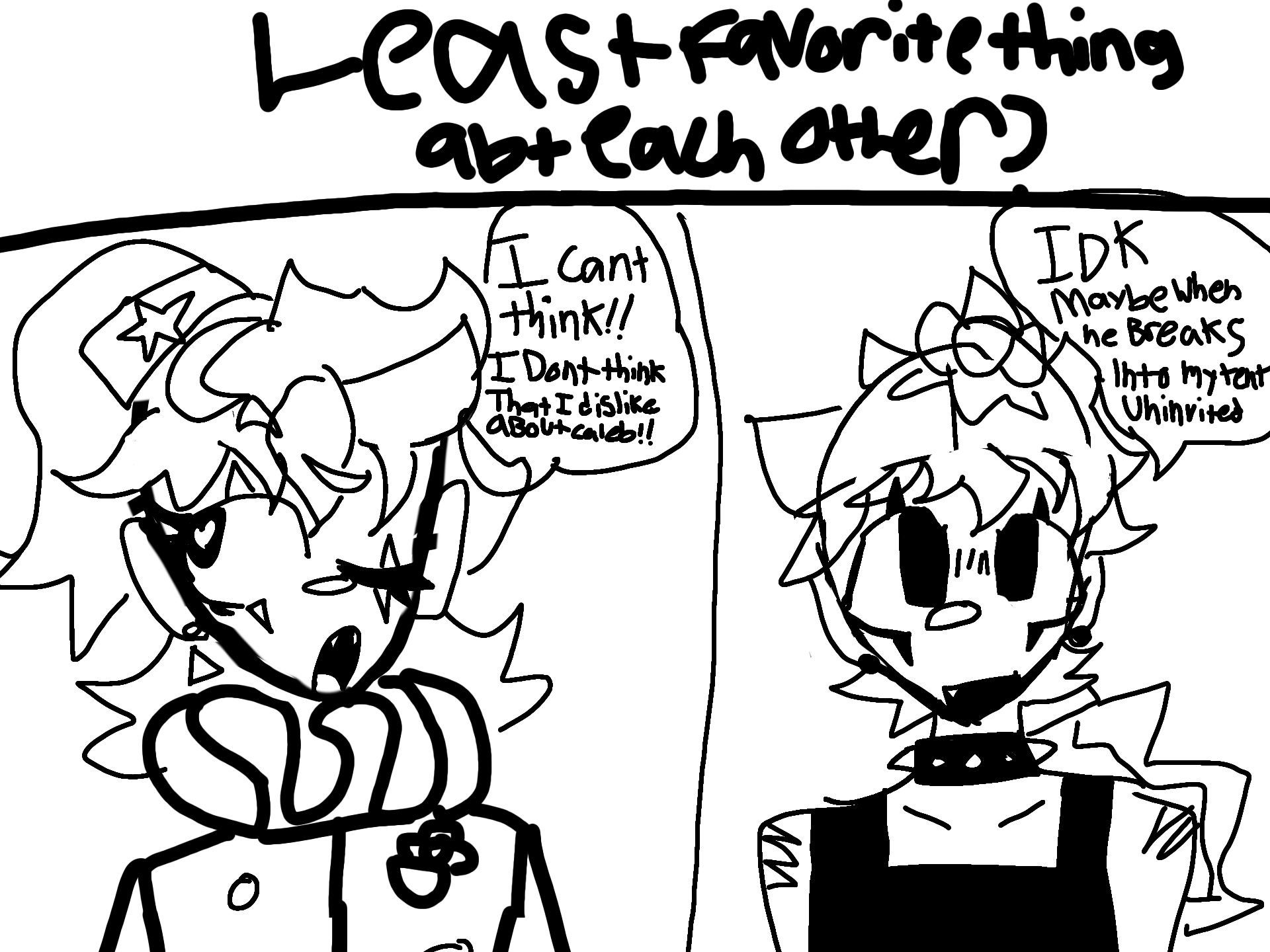 @SilverStar7318 asked: "what is their least favorite thing abt eachother?" #ocqna #qna #clowncrazy #oc #ocs #originalcharacter #originalcharacters