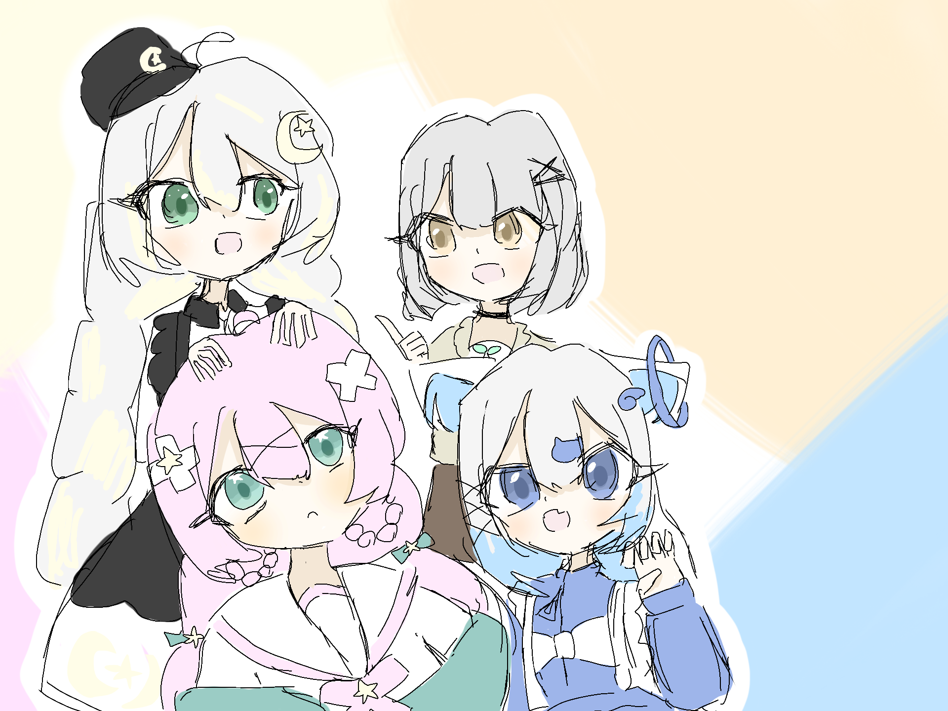 どーも梅大好きマンです(?)みんなの代理描こうと思ったがどれが代理かわからない愚かさ田中は絶対違う気がするムーナとミーナだよね!?のえちゃん!?らぅちゃんはあってるよね...?わかんね☆タグ失礼ー #田中#猫羽らぅ#ほしのうみ#るーなるな雑クオ許してねーーー
