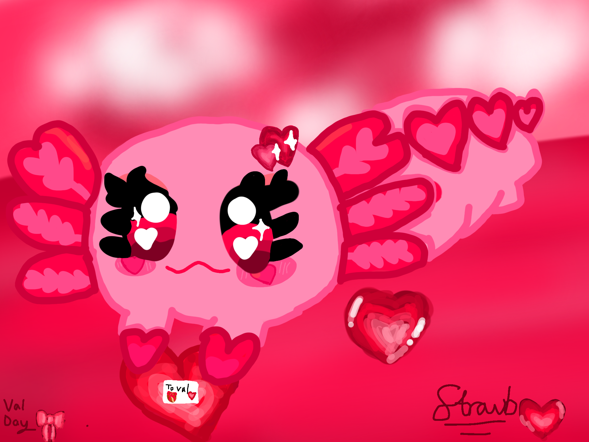 #Valentine #ValentinesDay #Axolotl #Love #Strawbdraws #Pink #Red