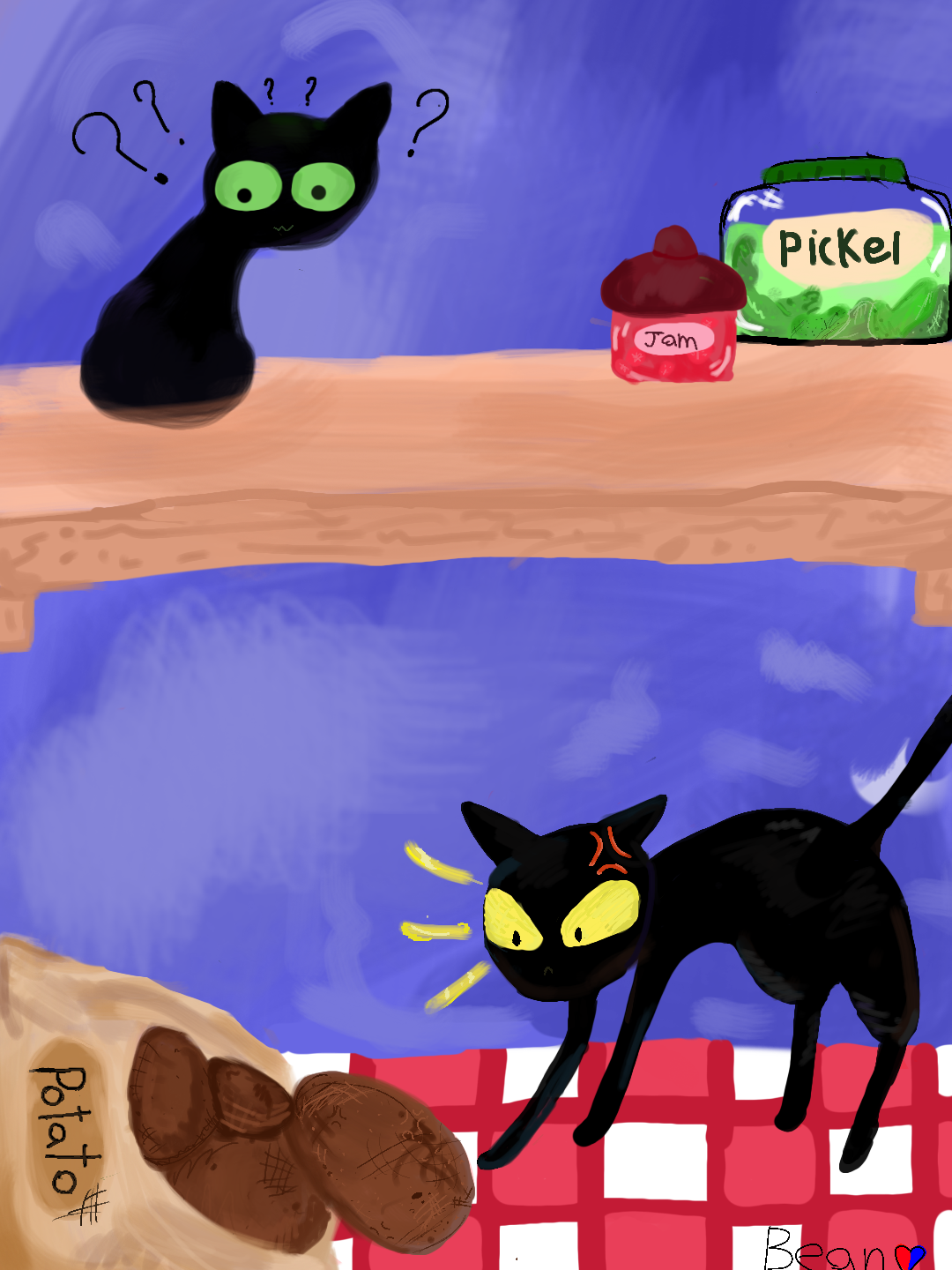 cat mad at potato. also Don't now why I made some more detailed then others